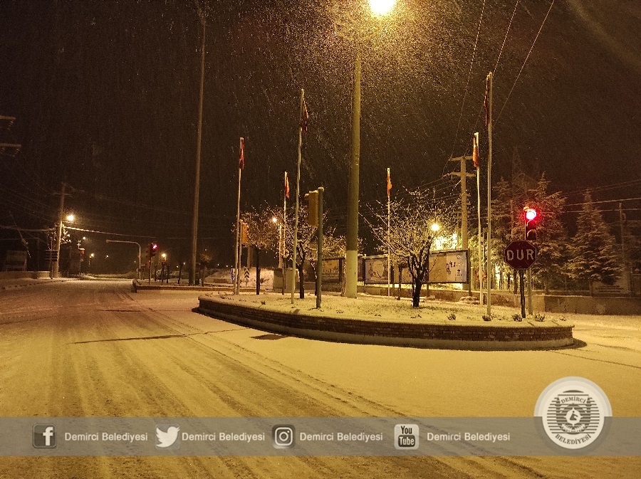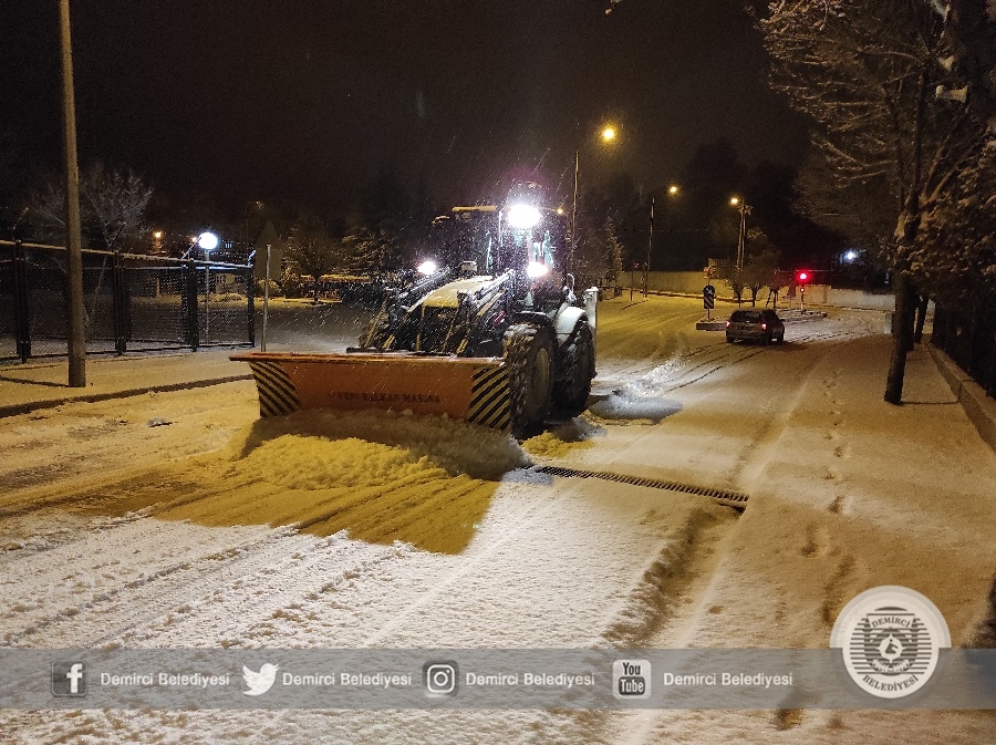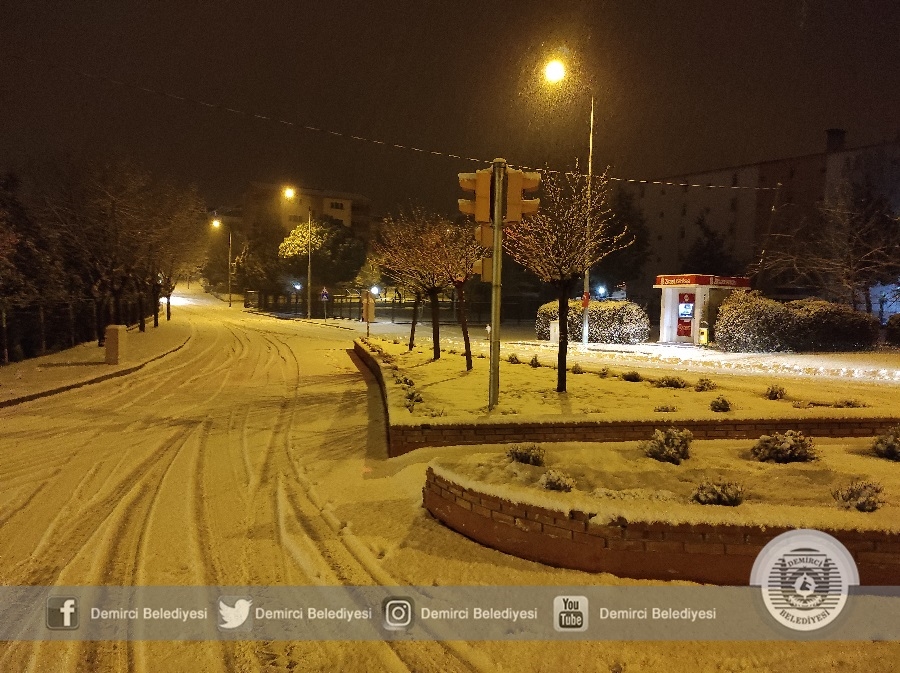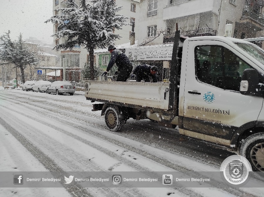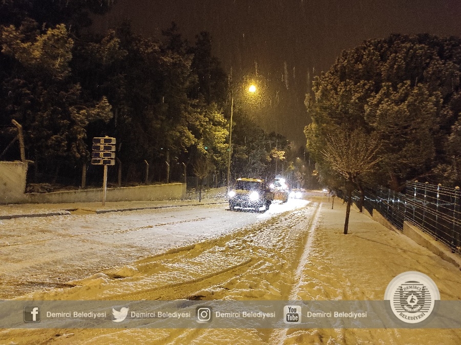 Demirci'de sabah saatlerinde etkisini arttıran kar yağışına karşı Demirci Belediyesi ekipleri 4 tuzlama aracı ve 3 iş makinesi ile çalışmalarını sürdürüyor.