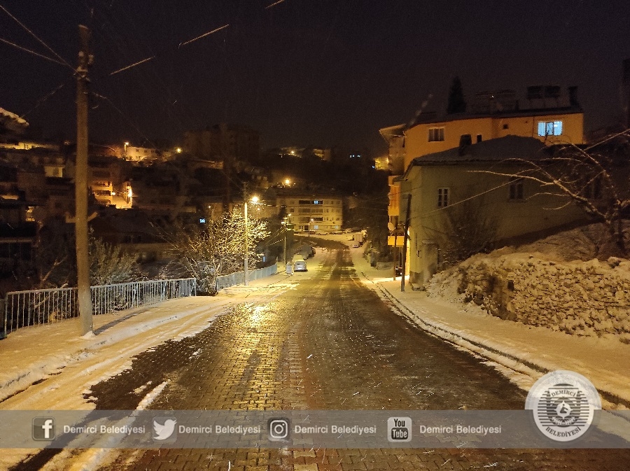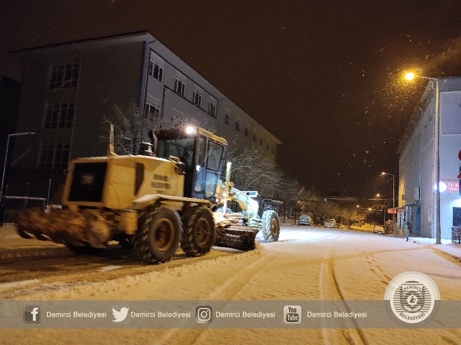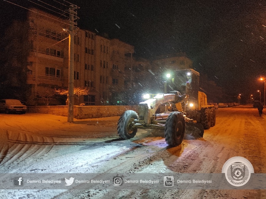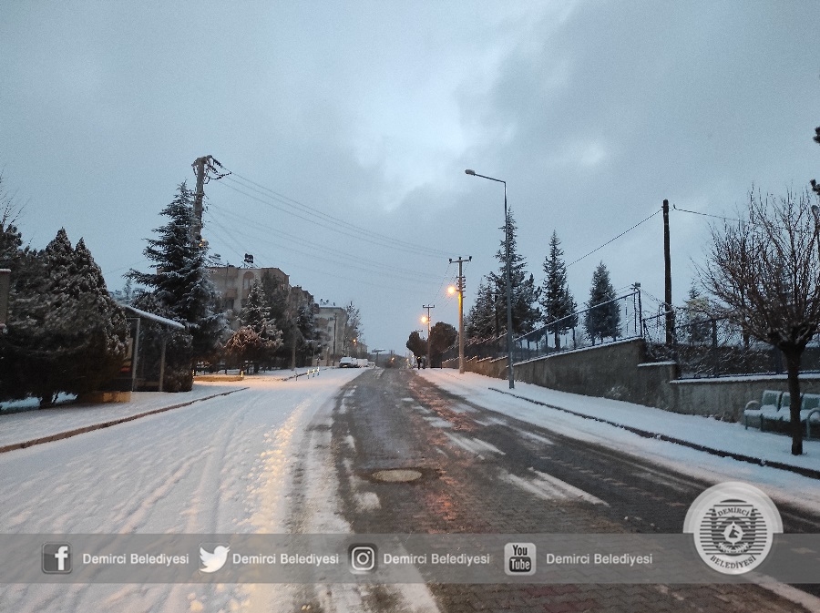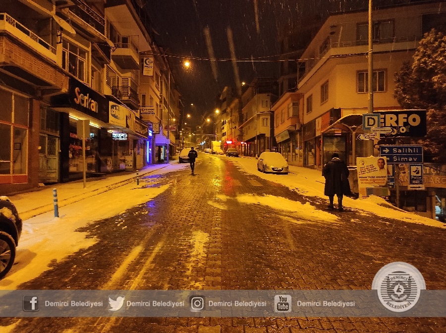 Demirci'de sabah saatlerinde etkisini arttıran kar yağışına karşı Demirci Belediyesi ekipleri 4 tuzlama aracı ve 3 iş makinesi ile çalışmalarını sürdürüyor.