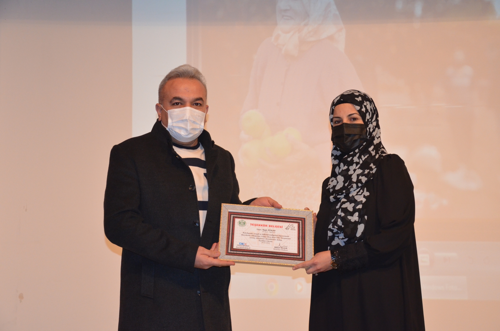 Kaymakam Adem Kaya, Belediye Başkanı Selami Selçuk'ta, İmam Hatip Lisesi Fen ve Sosyal Bilimler Proje Okulu Müdürü Özcan Darıcı'ya ve Necip Fazıl Kısakürek Fen Lisesi Müdürü Mustafa Yıldız'a Teşekkür Belgesi ve ödülleri takdim ettiler.