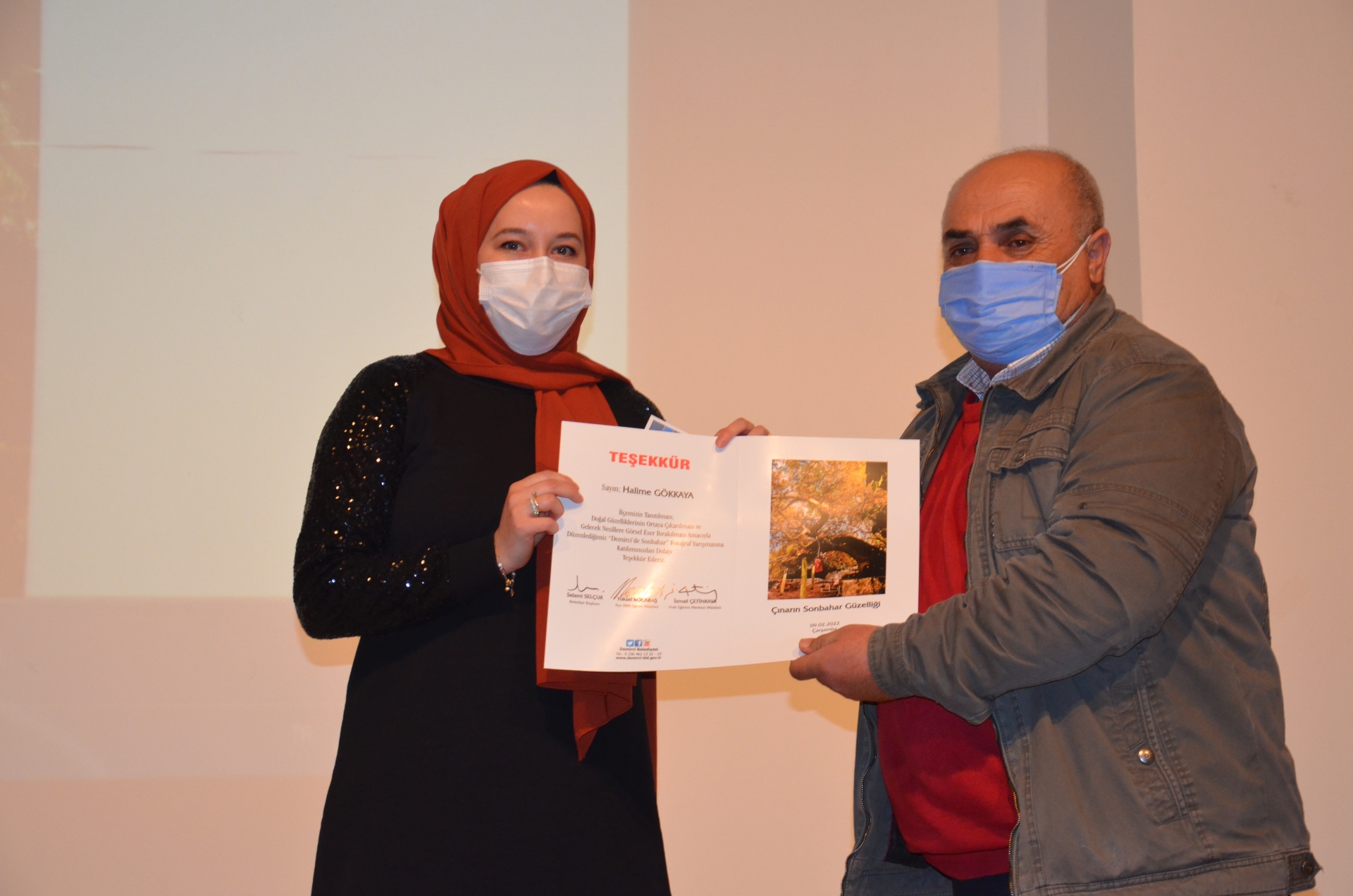 Demirci Belediyesi, İlçe Milli Eğitim Müdürlüğü ve Halk Eğitimi Merkezi Müdürlüğü işbirliği ile düzenlenen "Demirci'de Sonbahar " fotoğraf yarışmasında halk oylaması ile dereceye girenlere ödülleri verildi.