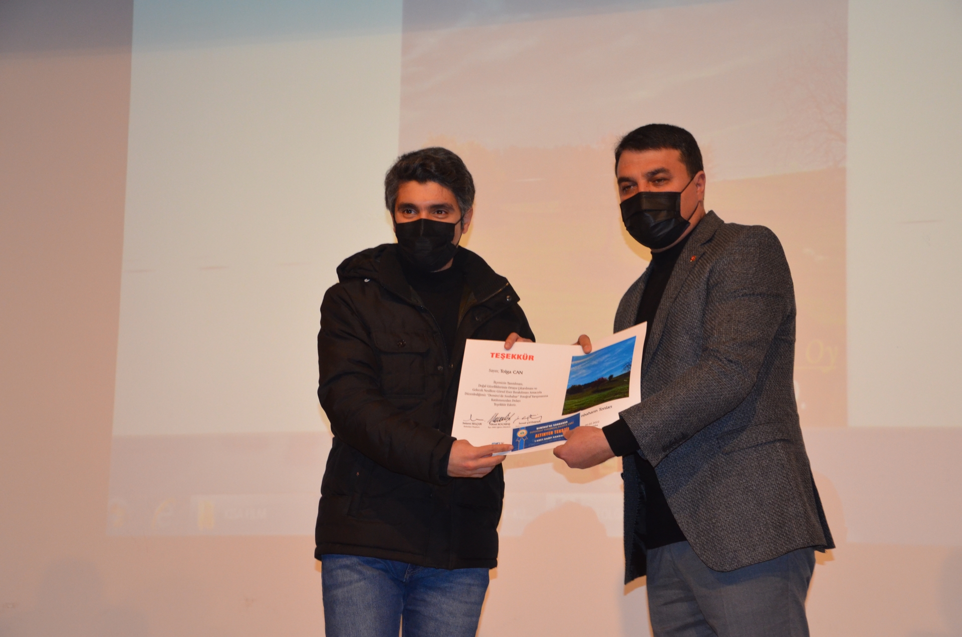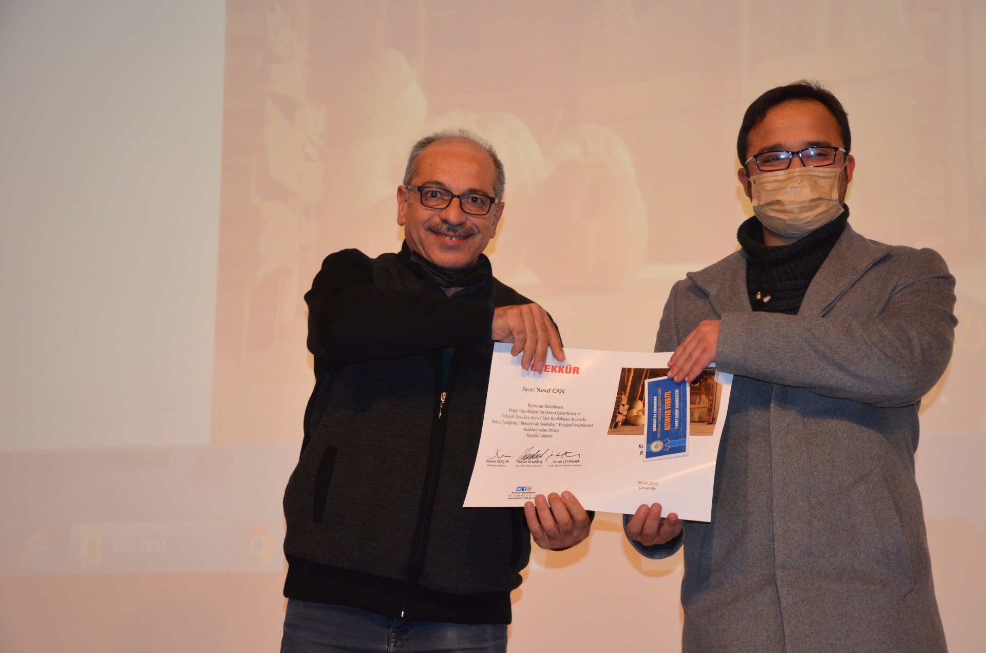 " Demirci'de Sonbahar " fotoğraf yarışmasında Jüri üyesi olarak yer alan Halk Eğitimi Merkezi Müdürü İsmail Çetinkaya, Ecz. Mustafa Gül ve Ali Özkahraman'a desteklerinden dolayı teşekkür belgesi ve ödül verildi.