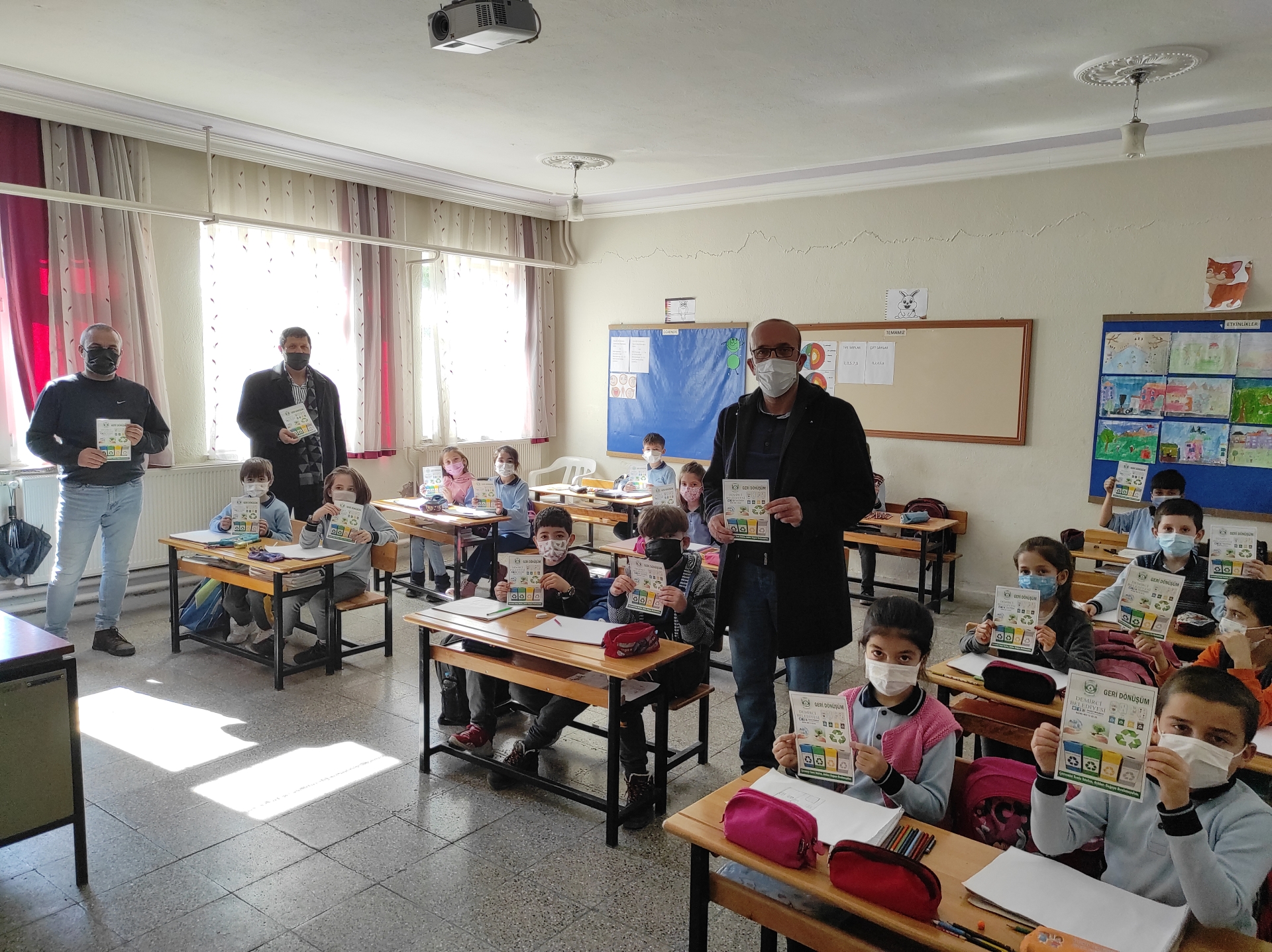 Okullarda belediye tarafından cam, plastik ve kağıt gibi geri dönüşüm kutuları oluşturularak öğrencilerin belirtilen türdeki atıkları kutulara atması sağlanıyor.