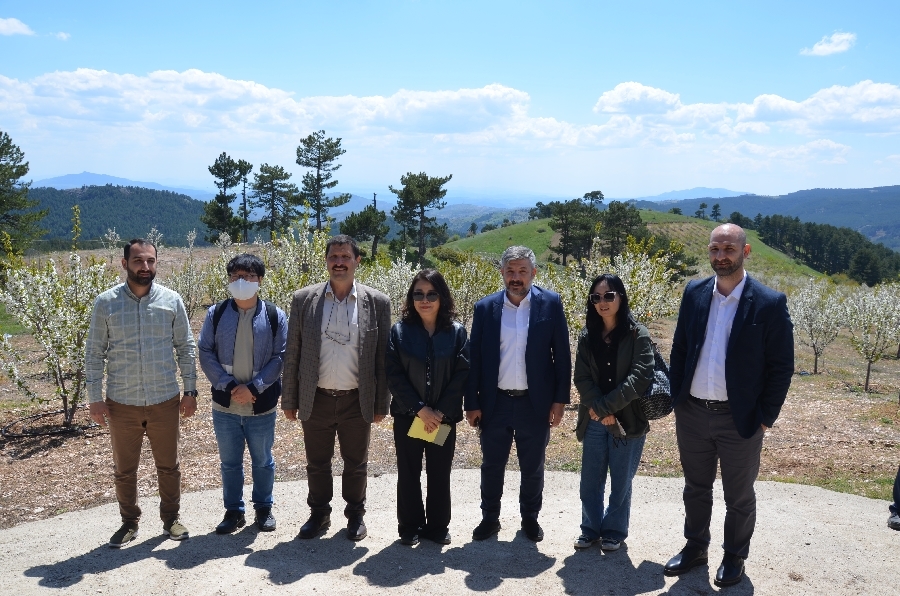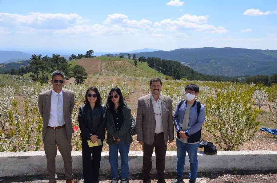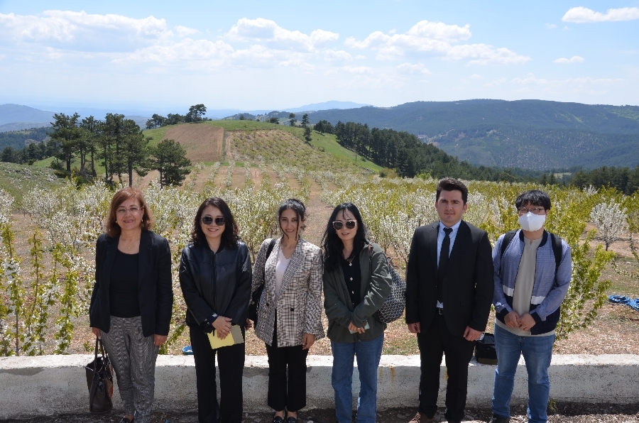 Güney Kore heyeti kiraz ağaçlarını inceleyerek bölgedeki çalışmaların son derece iyi olduğunu ifade ettiler.