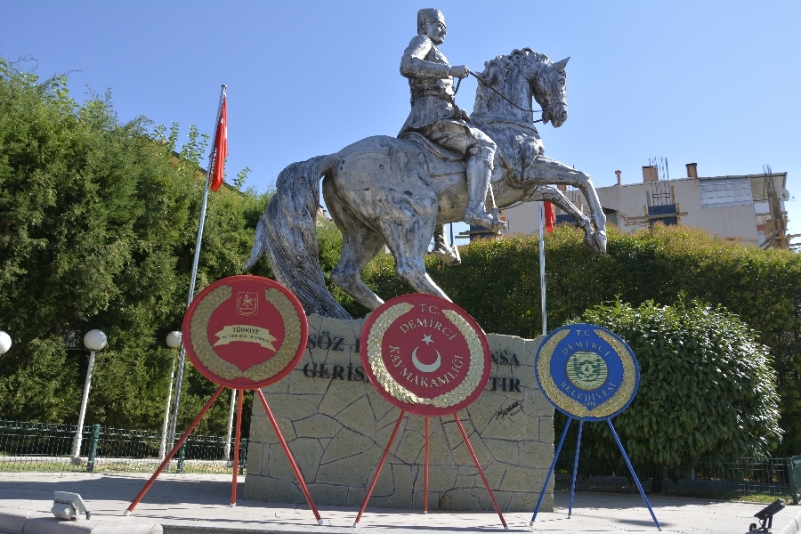 Atatürk anıtında düzenlenen törene Demirci Kaymakamı Adem Kaya, Belediye Başkanı Selami Selçuk, Cumhuriyet Başsavcısı Betül Ilıca, Muharip Gaziler Derneği Başkanı Kamil Aydemir, Gaziler, İlçe Protokolü ve Vatandaşlar katıldı.