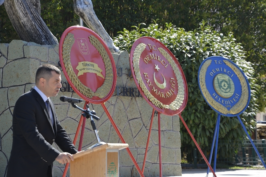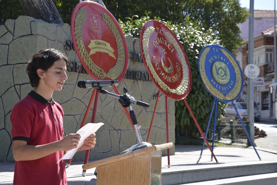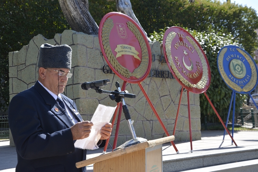 Törende saygı duruşu ve İstiklal marşının okunmasının ardından Demirci Muharip Gaziler Derneği Üyesi Kıbrıs Gazisi Himmet Çetin tarafından günün anlam ve önemini belirten konuşma gerçekleştirildi.