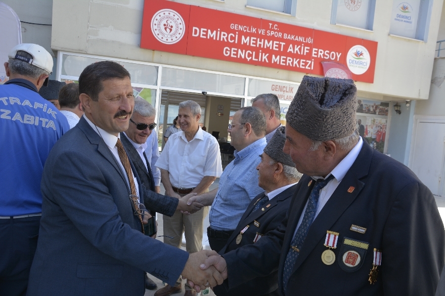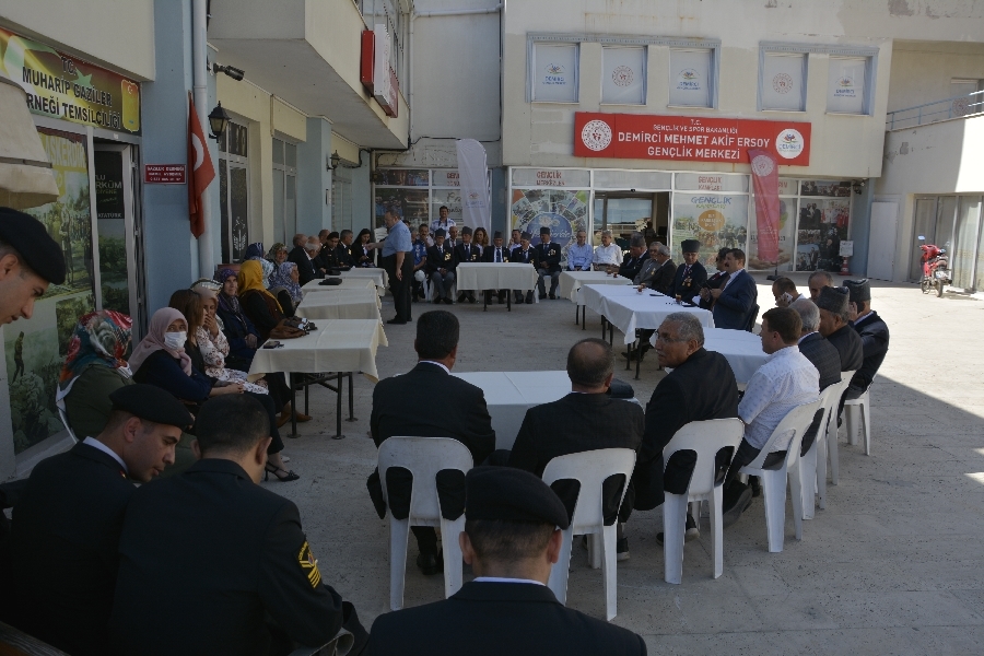 Törenin ardından Kaymakam Adem Kaya, Belediye Başkanı Selami Selçuk ve ilçe protokolü Demirci Muharip Gaziler derneğinde gazileri ziyaret ettiler.