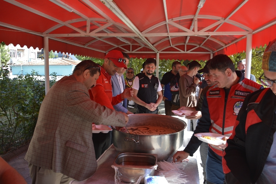 Demirci Halıkent Atatürk parkında düzenlenen faaliyette motosiklet tutkunlarına ilçenin yöresel lezzeti olan keşkek ikramı yapıldı.