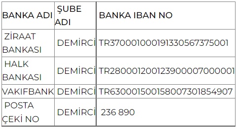 İsteyen vatandaşlar ödemelerini anlaşmalı bankalara yada internet üzerinden online https://webportal.demirci-bld.gov.tr/web/guest/38 olarak yapabileceği gibi kredi kartı ya da nakit olarak 30 Kasım 2022 Çarşamba günü mesai bitimine kadar belediye veznelerinden de yapabilecek.