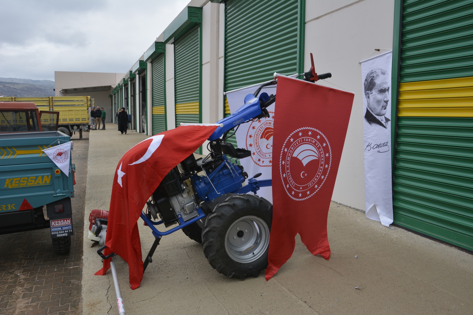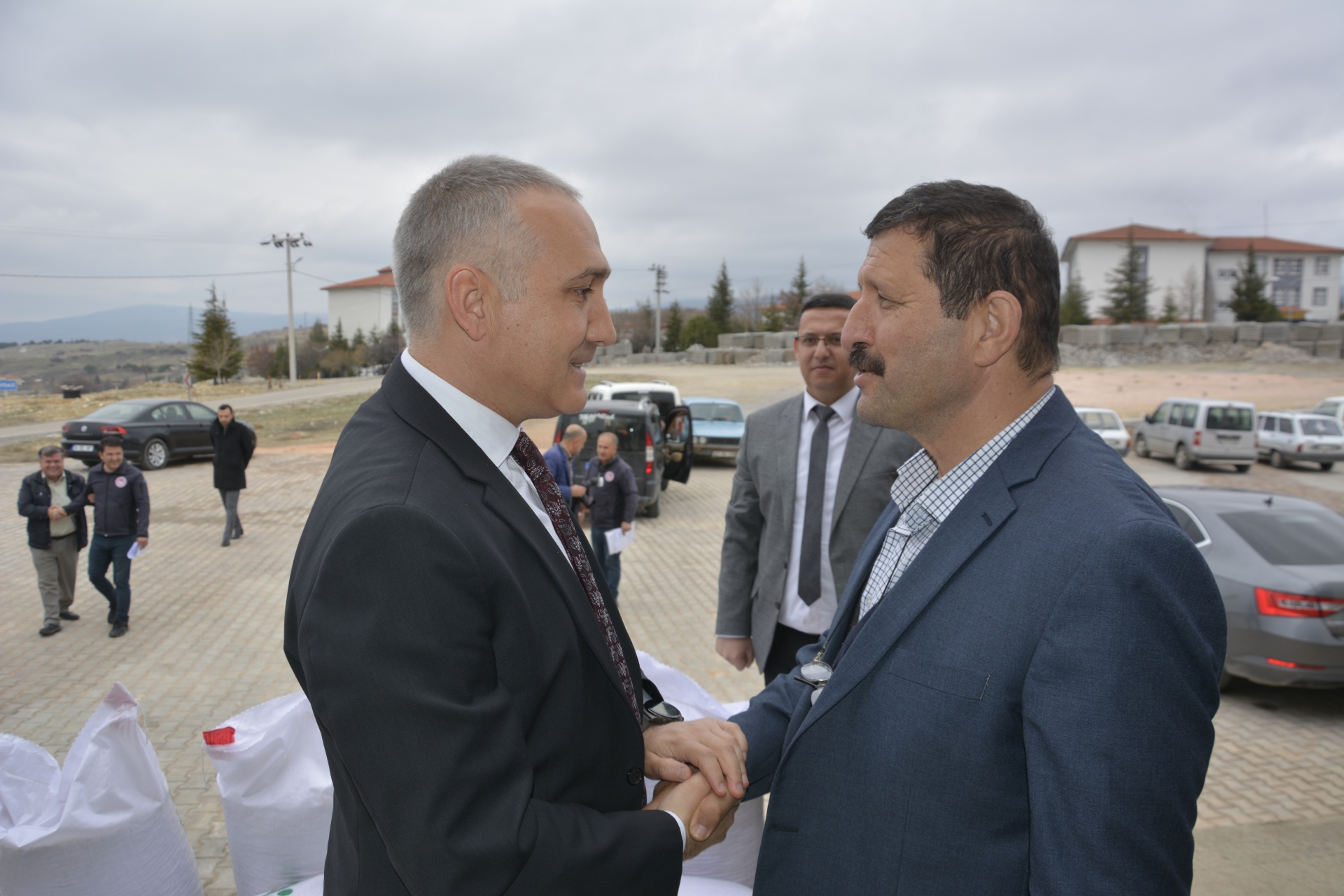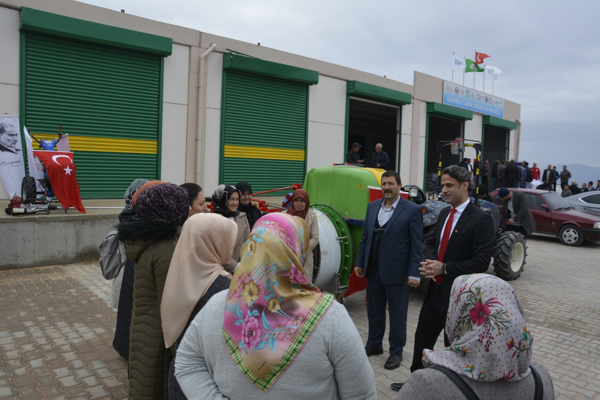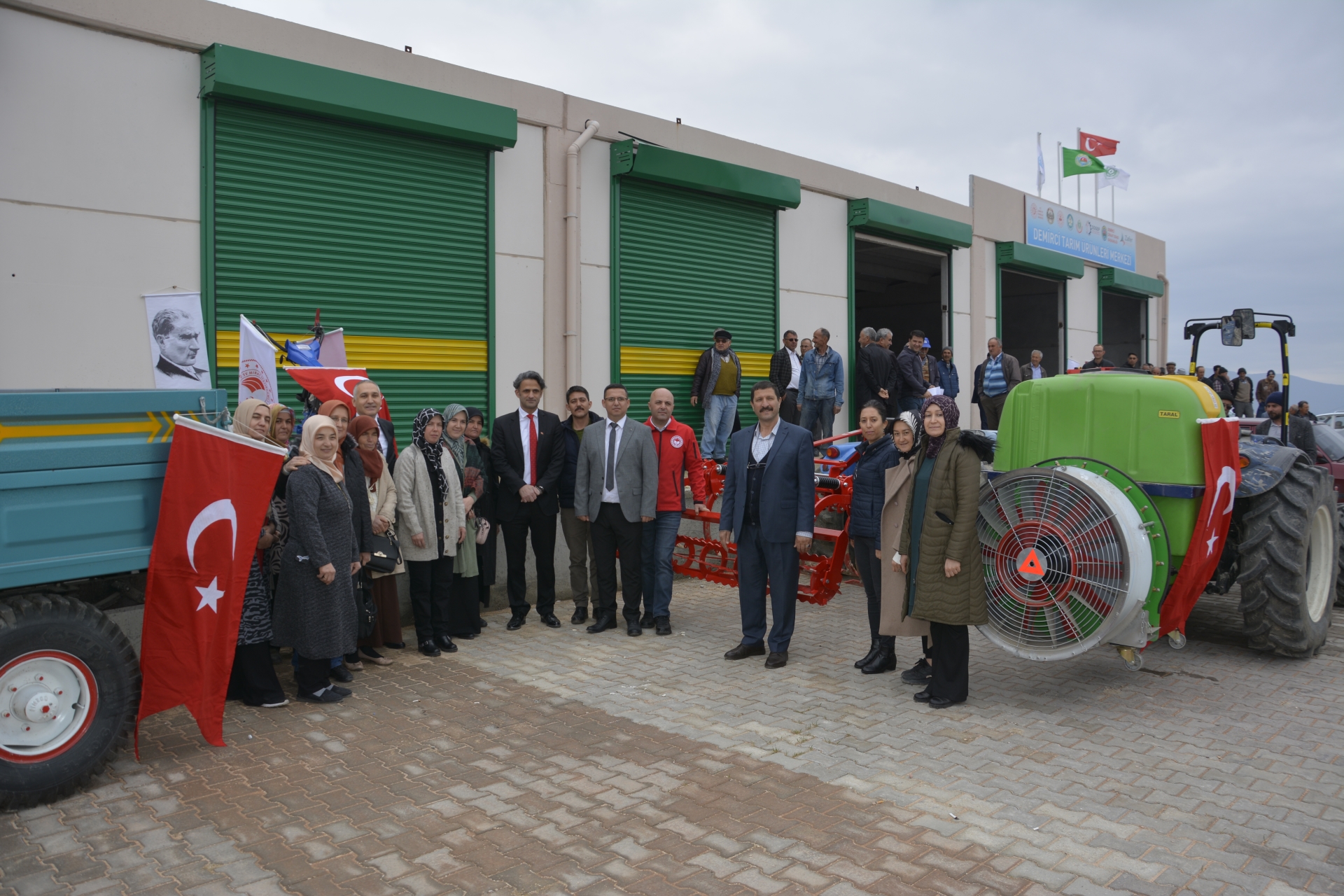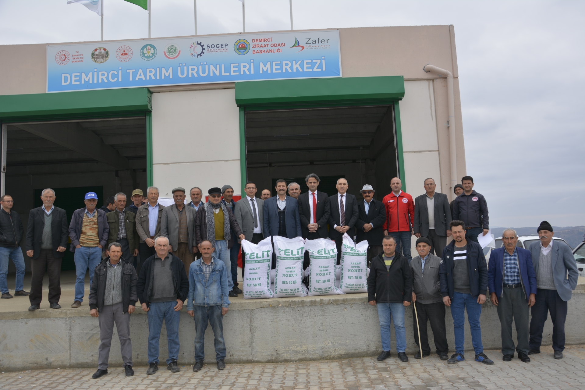 Tarım ürünleri merkezinde çiftçilere tarım ekipmanı ve nohut tohumu dağıtımı Demirci Kaymakamı Adem Kaya, Belediye Başkanı Selami Selçuk ve Manisa İl Tarım ve Orman Müdürü Metin Öztürk tarafından yapıldı.