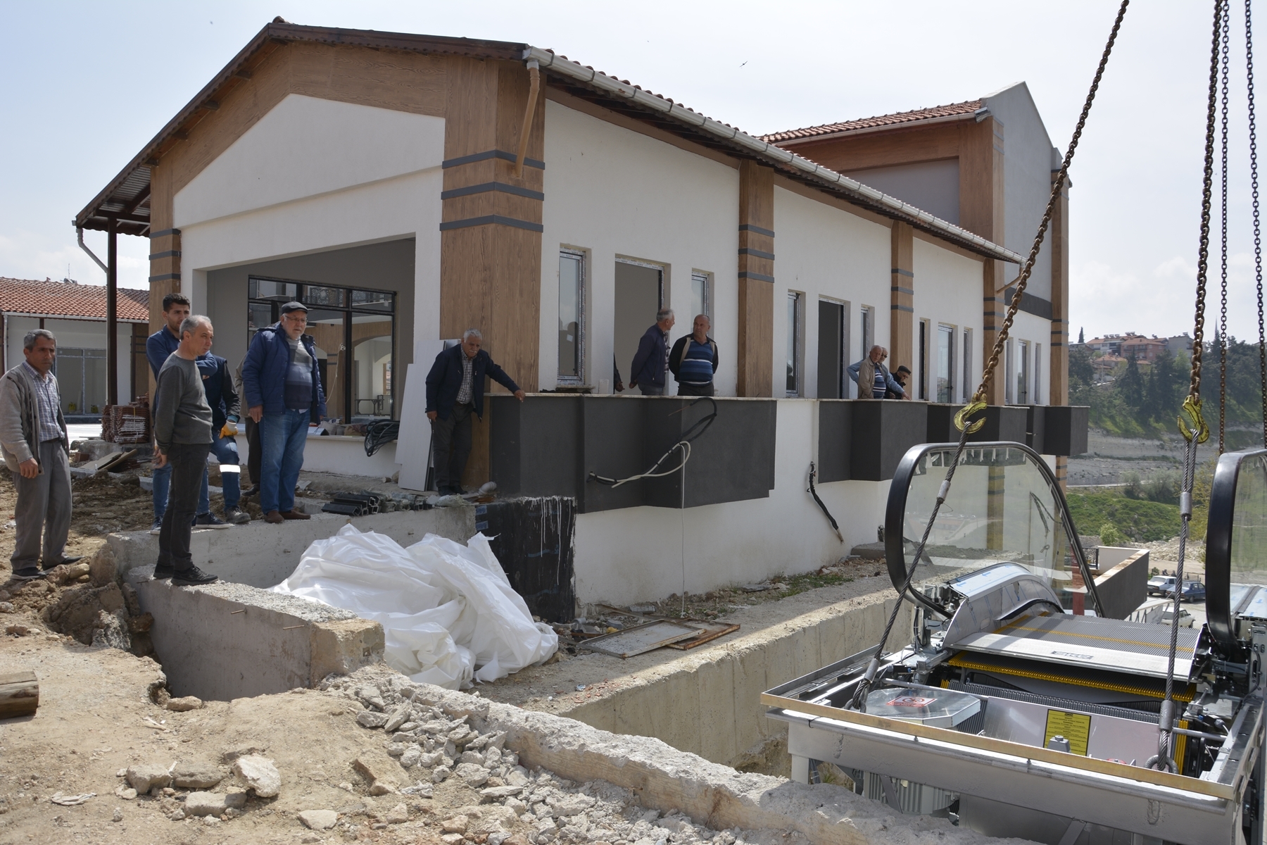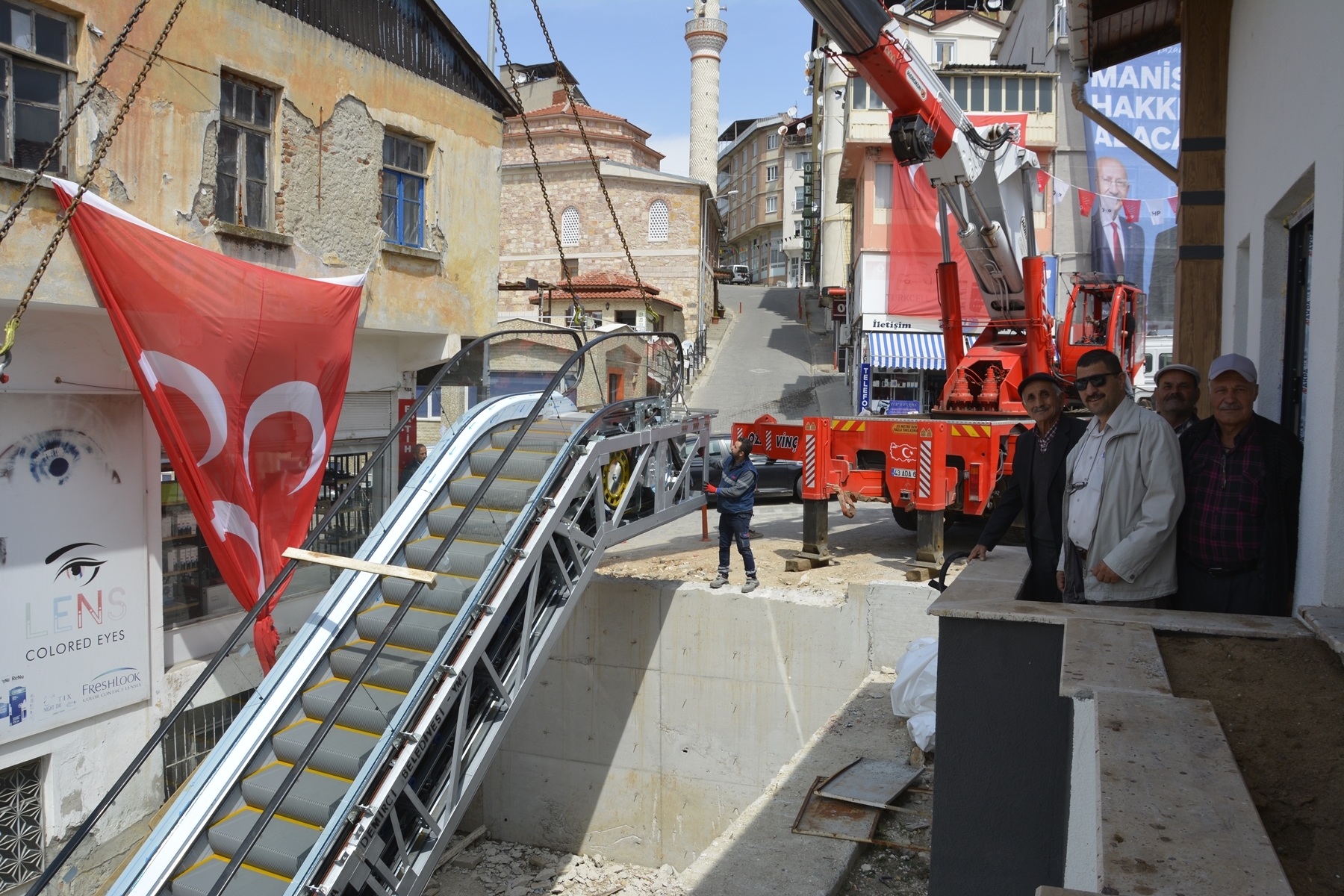 Demirci Belediyesi tarafından yapılan yürüyen merdivenin montajına başlandı.