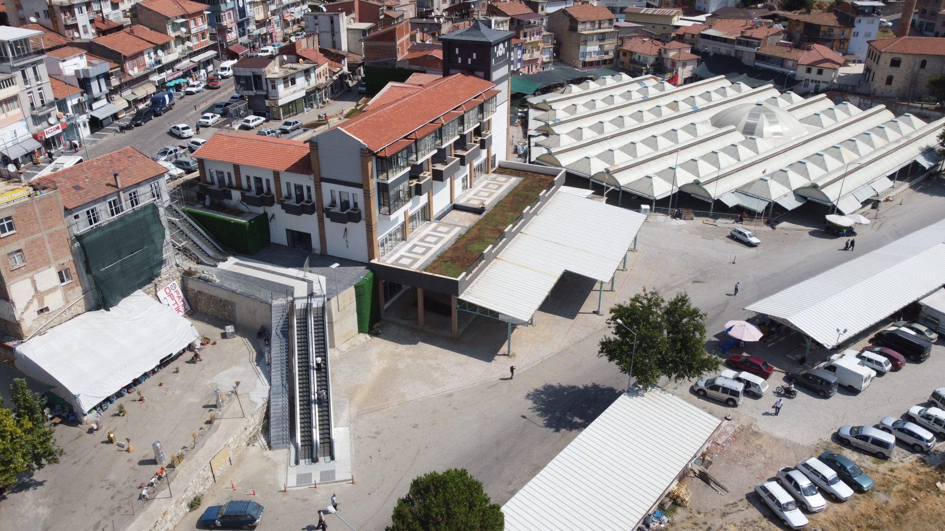 Kent merkezi yanından pazaryerine bağlanan yokuşa 2 kademeli iniş ve çıkışı bulunan, diğer yandan Mehmet Akif Ersoy gençlik merkezi yanından yine pazaryerine ulaşan tek kademeli yürüyen merdiven yapıldı.