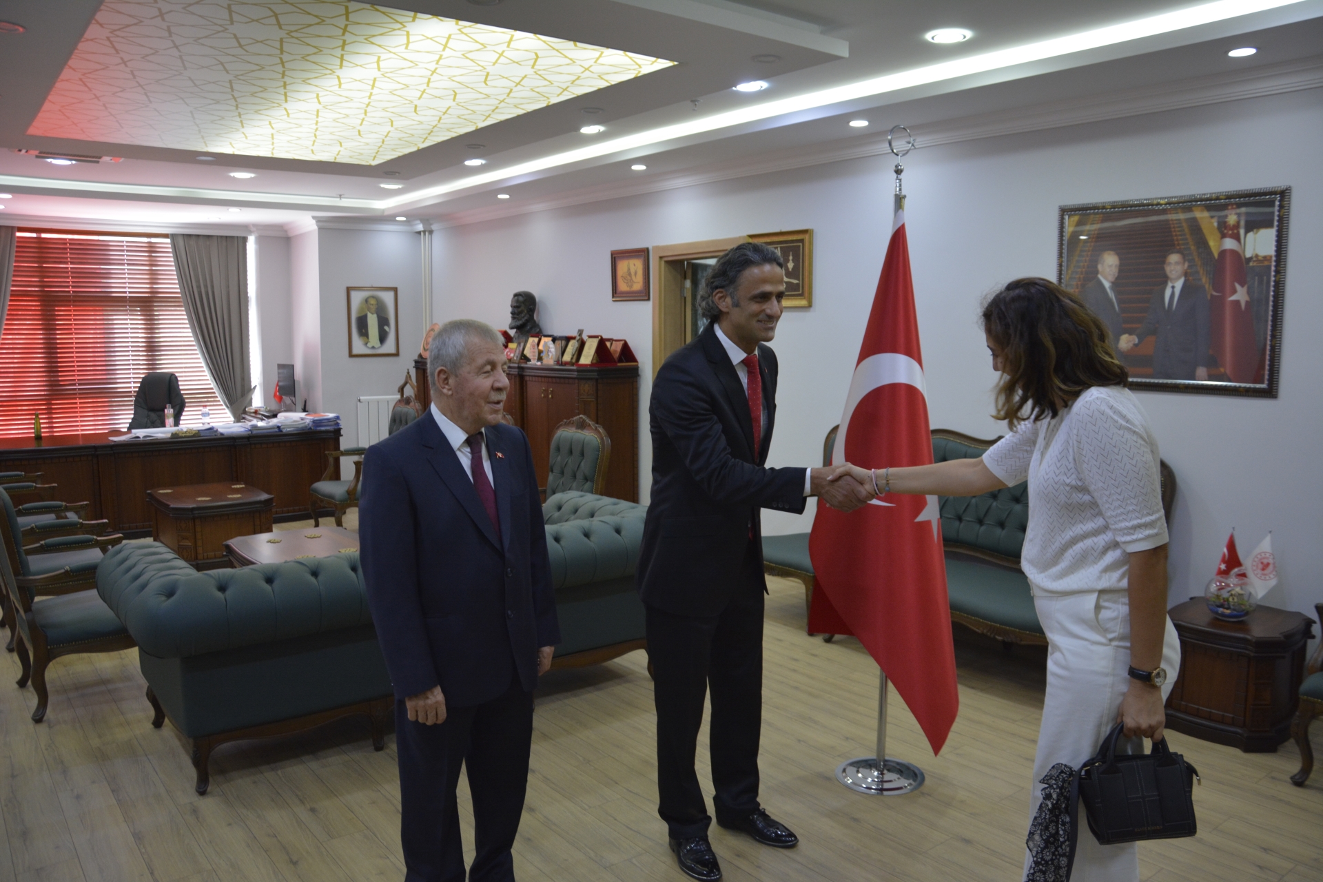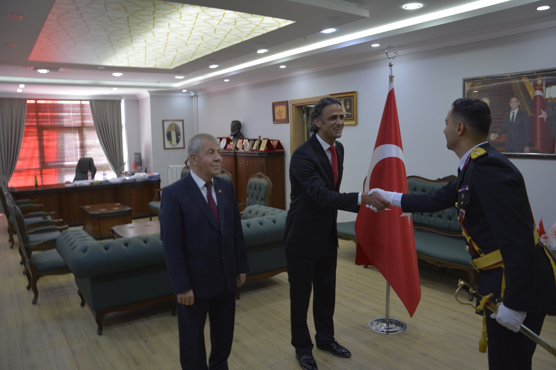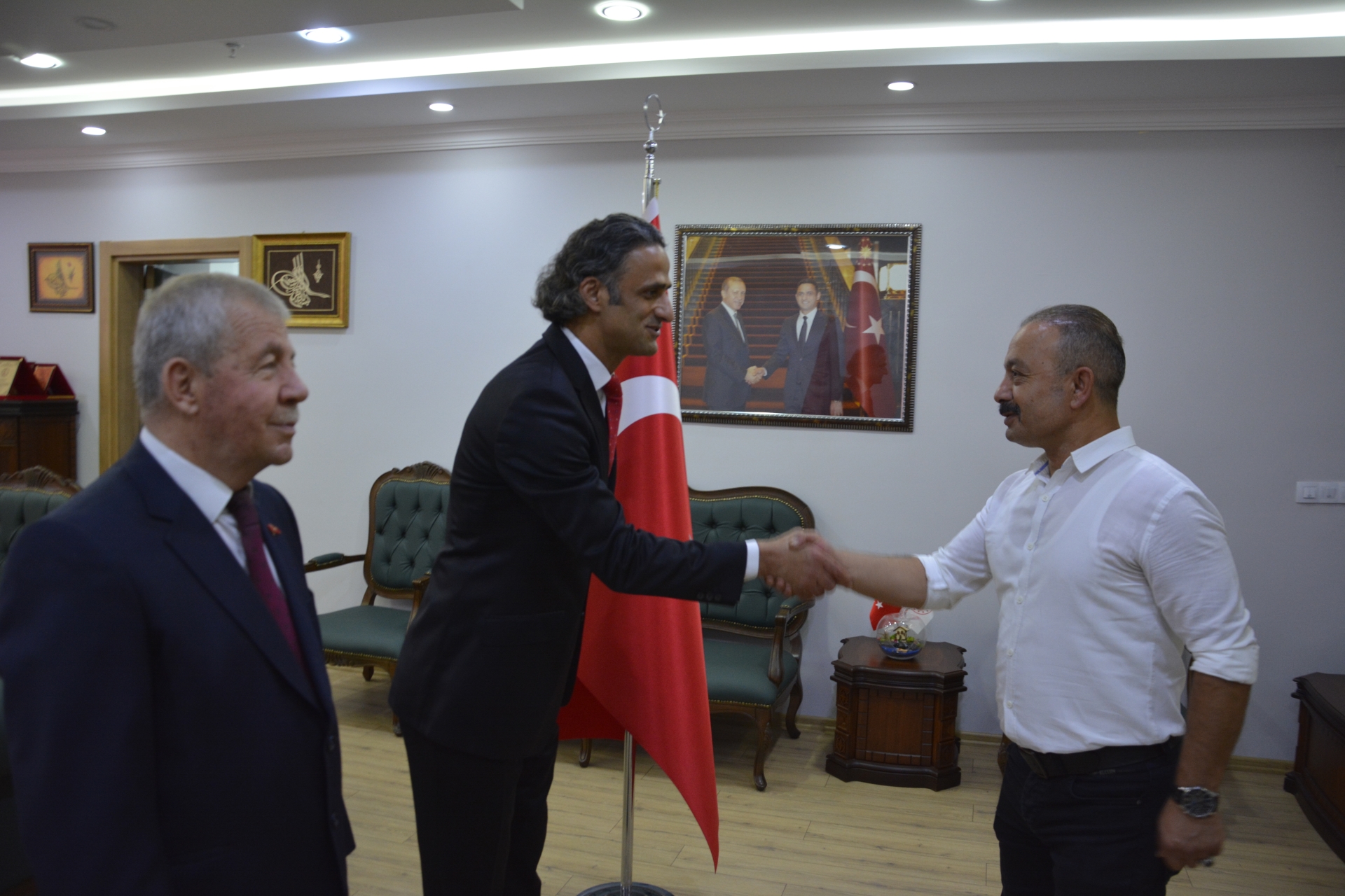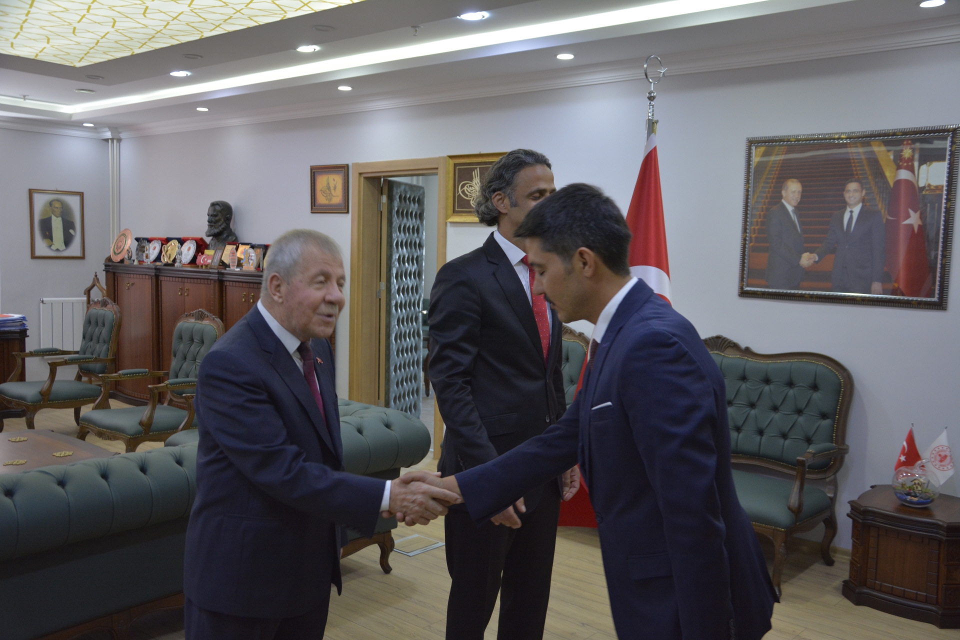 Atatürk anıtındaki törenin ardından Kaymakam Adem Kaya ve Belediye Başkan Vekili Mustafa Ünlü tebrigatları kabul ettiler.