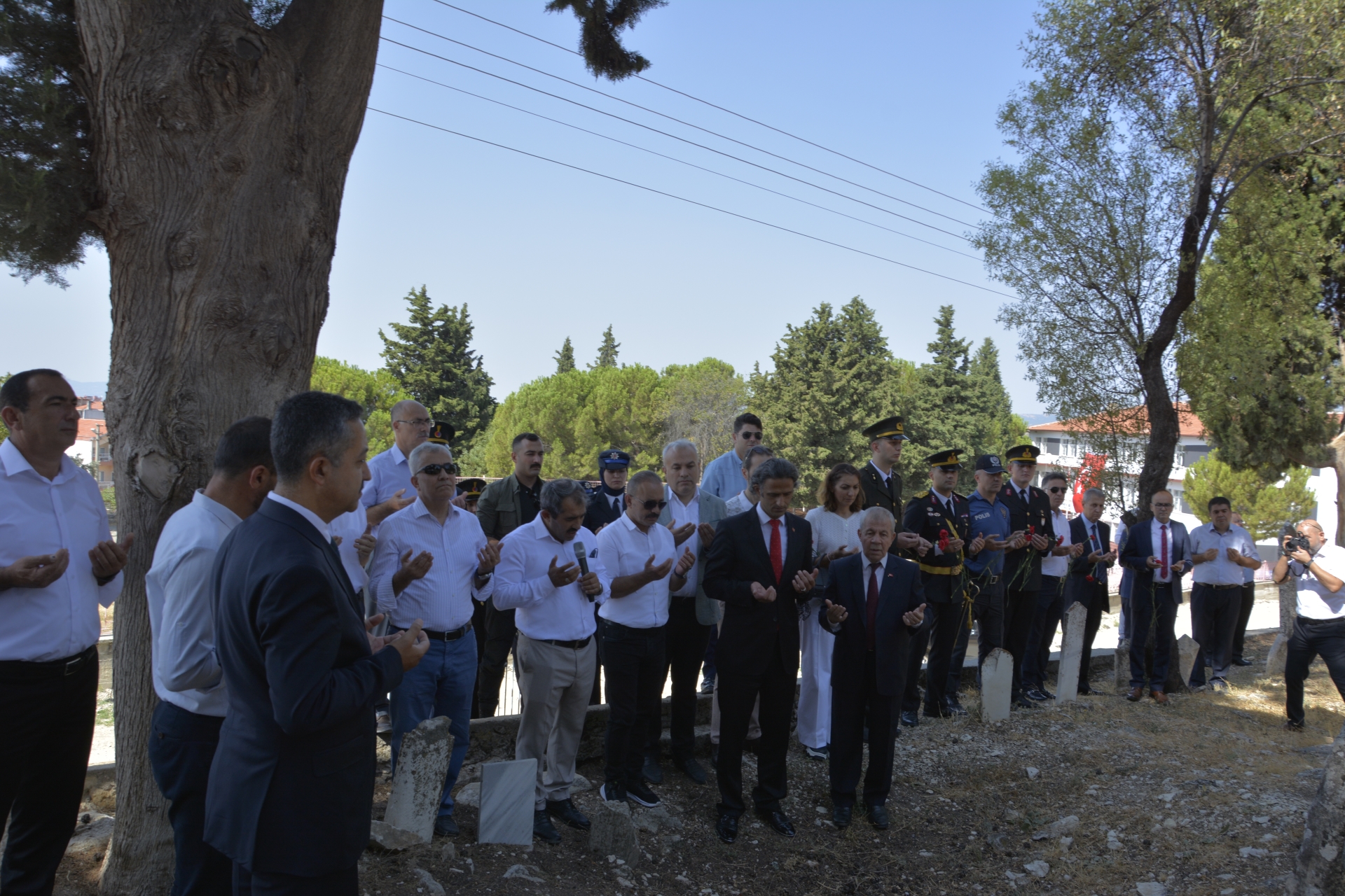 Ziyarette İlçe Müftüsü İbrahim Sağlam tarafından dua okundu ve kabristanlara karanfil bırakıldı.