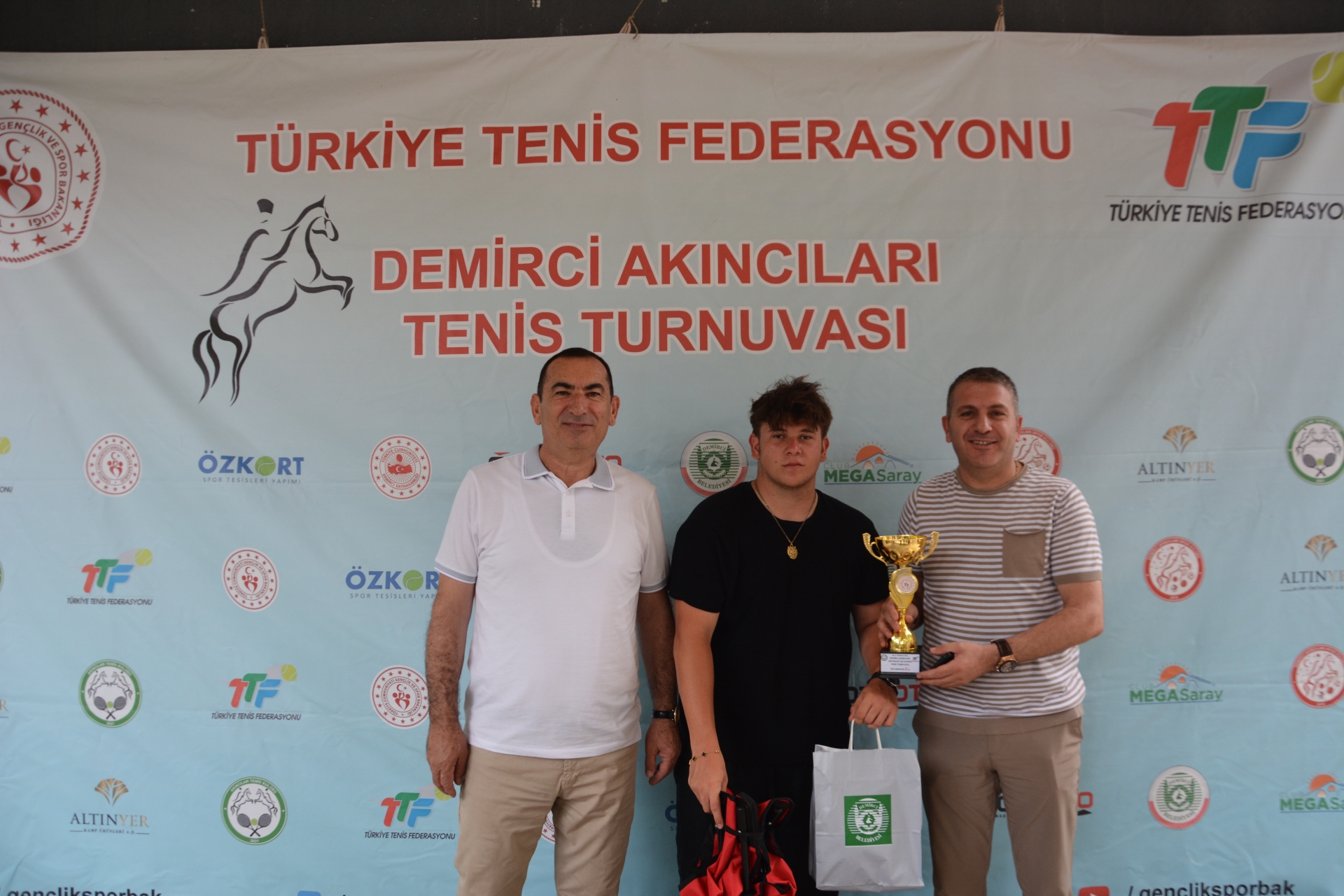 Büyükler Yaz Kupası Türkiye Serisi 3 tenis turnuvasında kategorilerine göre dereceye giren sporculara ödülleri Demirci Kaymakamımız Adem Kaya, Belediye Başkanımız Erkan Kara, Belediye Başkan Yardımcımız İsmail Hakkı Gül, Gençlik Hizmetleri ve İlçe Spor Müdürü Bilal Yılmaz ve Altınyer A. Ş. Firması sahibi Gökhan Yer tarafından takdim edildi.
