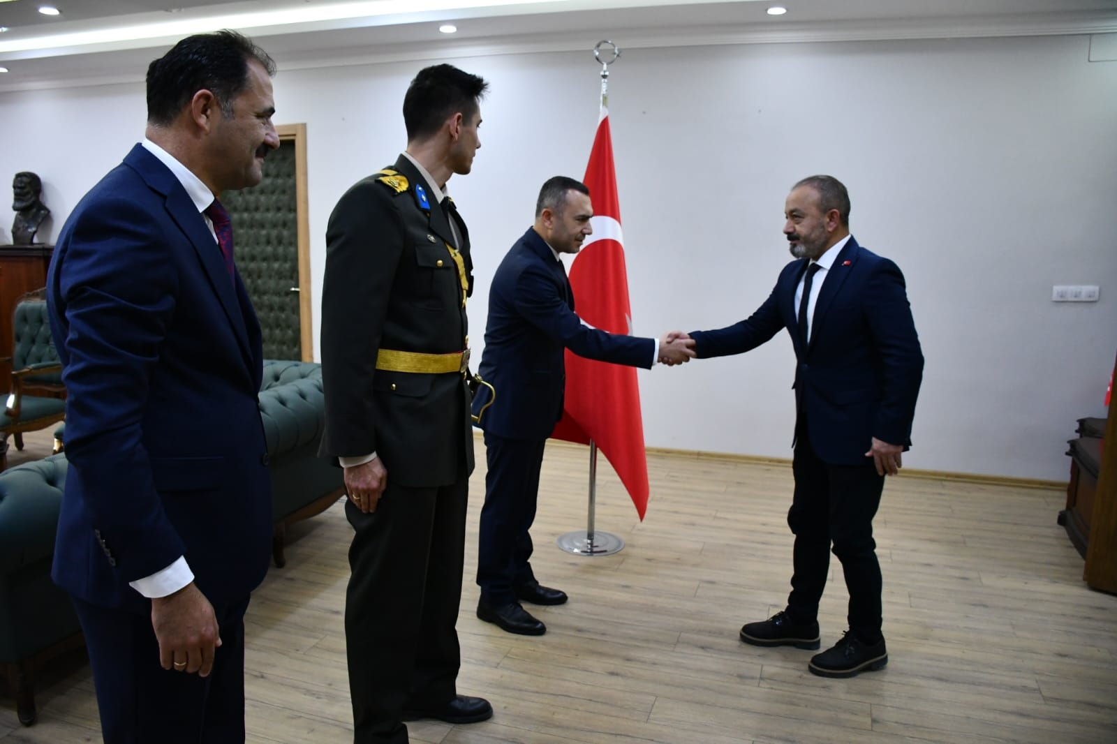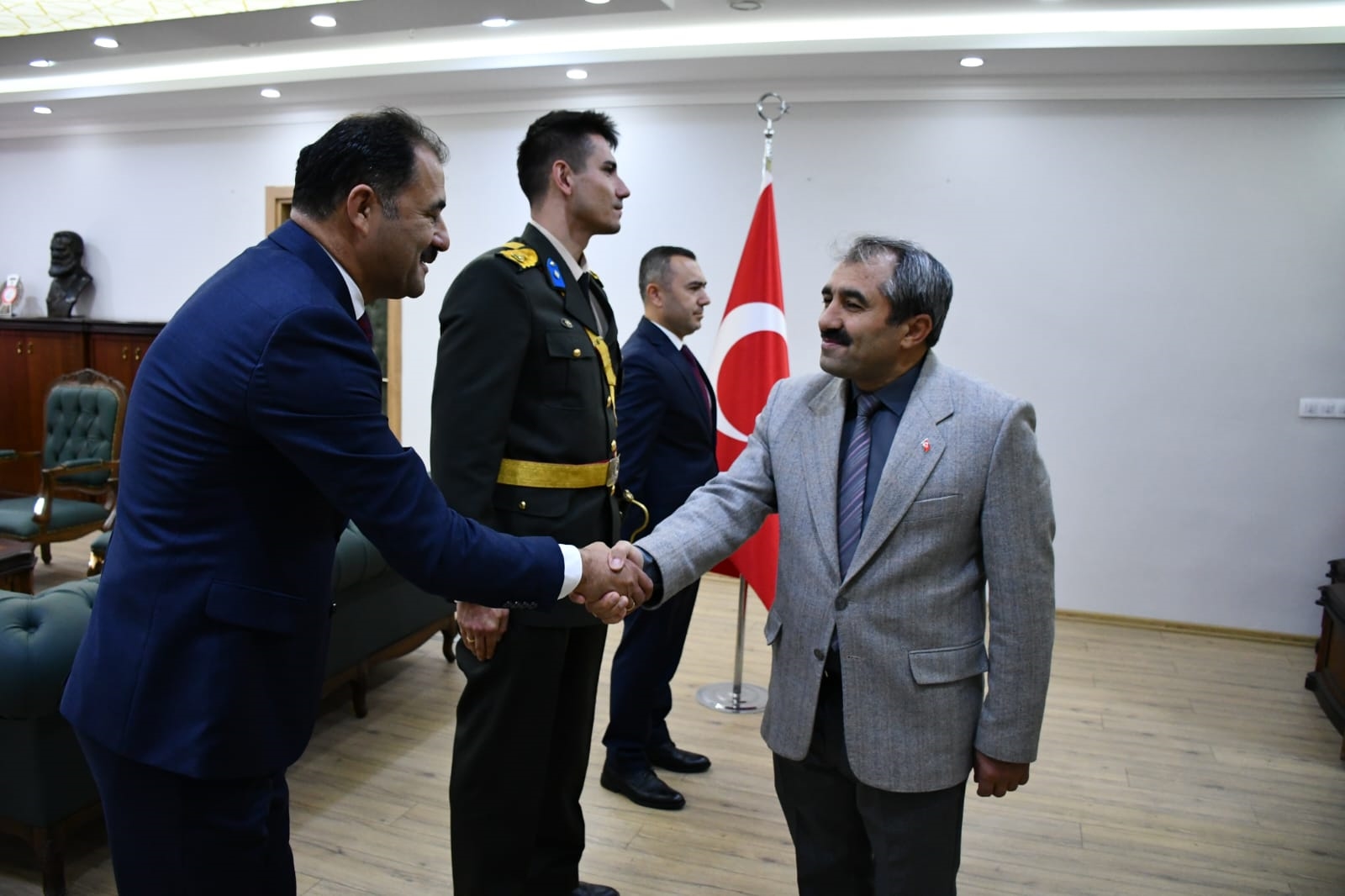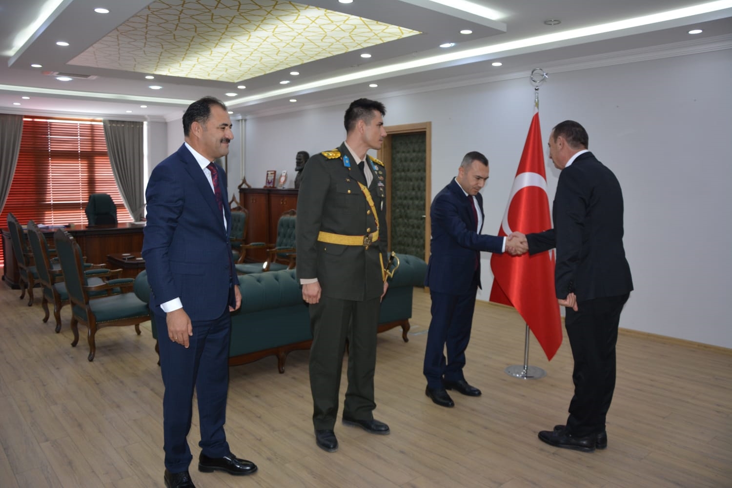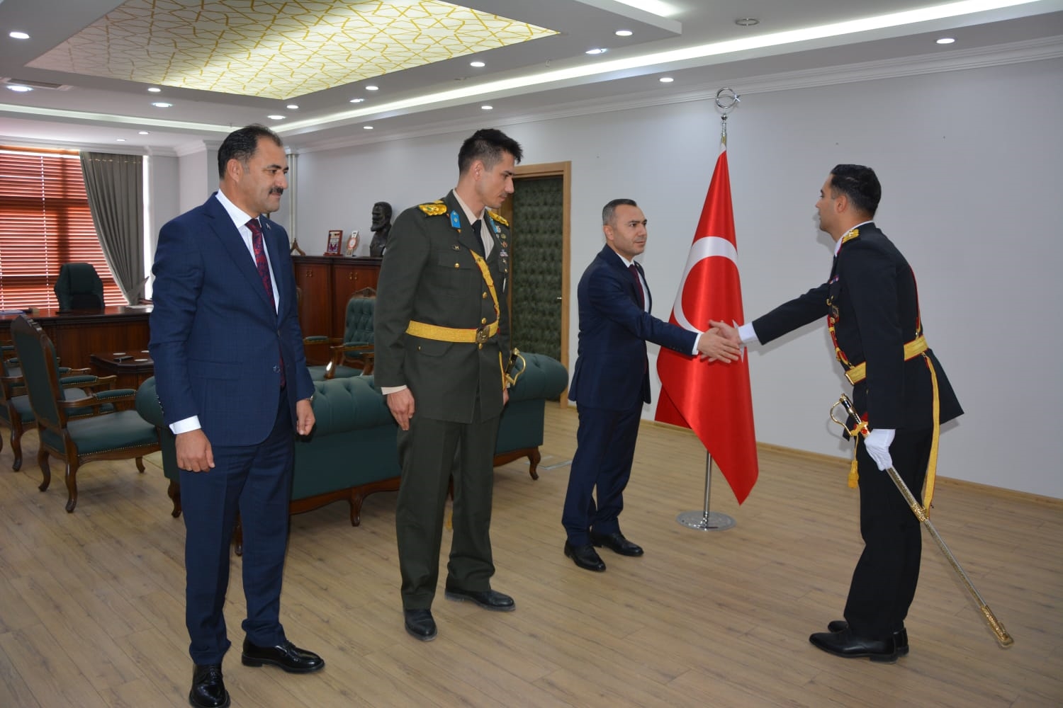 29 Ekim 2024 Salı günü Cumhuriyet bayramı törenleri kapsamında ilk olarak Demirci Kaymakamlığında Kaymakamımız Yavuz Arslan, Garnizon Komutanı Mly. Binbaşı Hüseyin Cihan Korkmaz ve Belediye Başkanımız Erkan Kara ilçe protokolünün tebriklerini kabul etti.