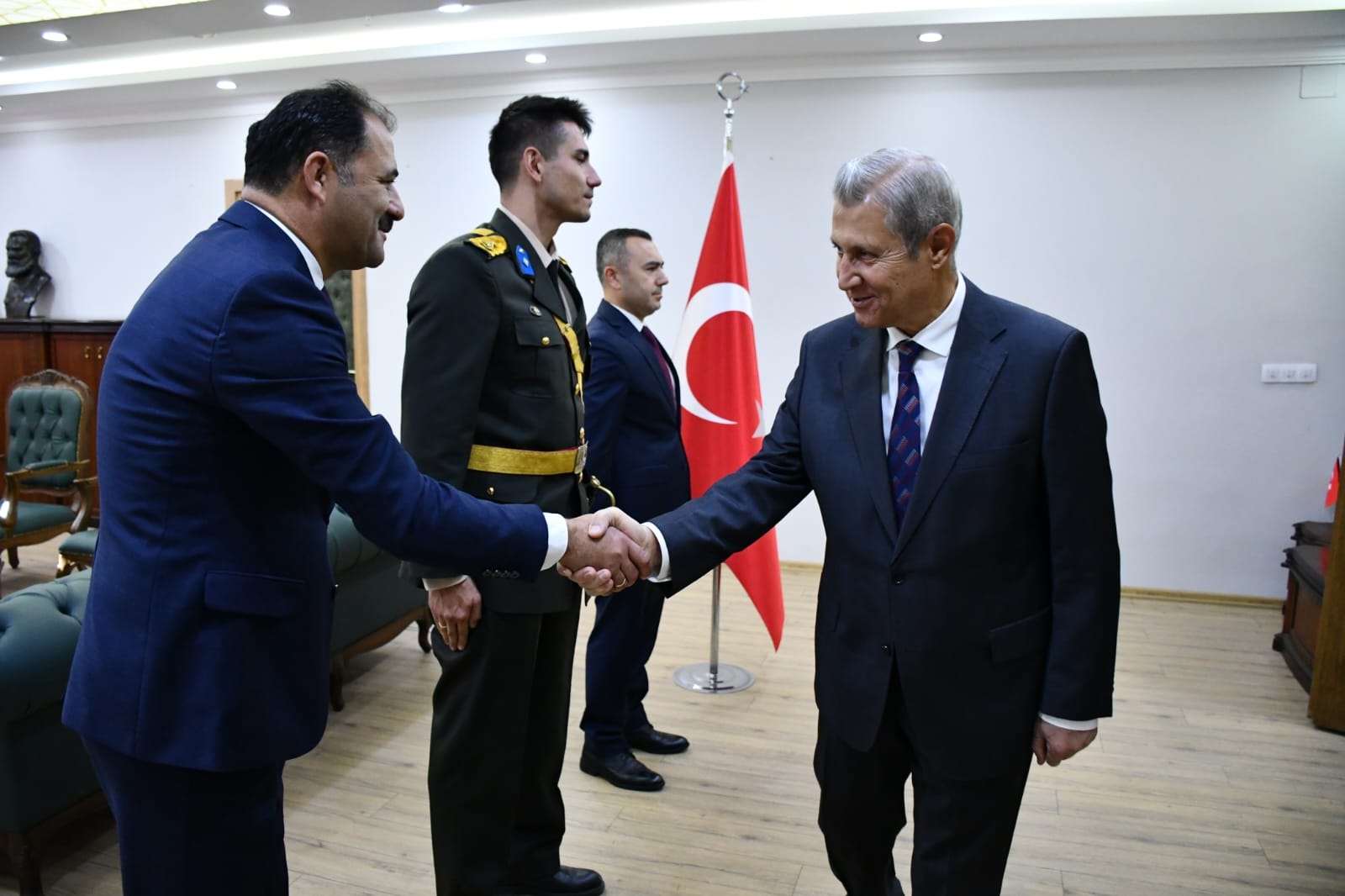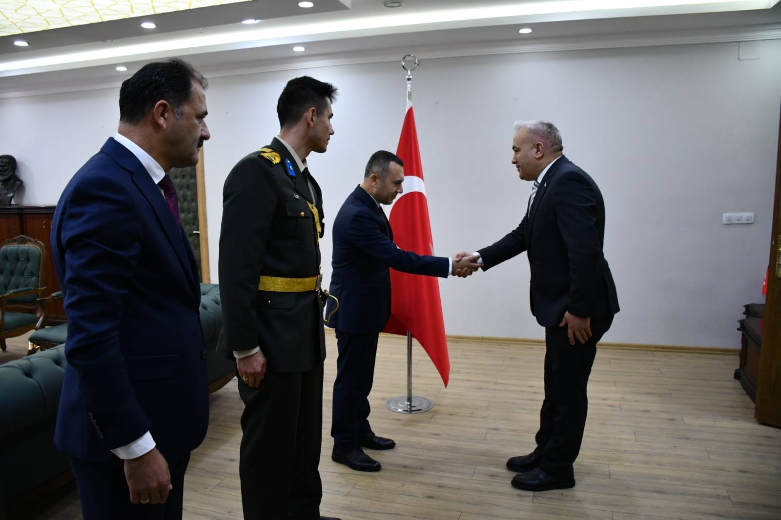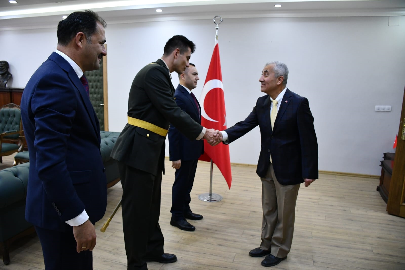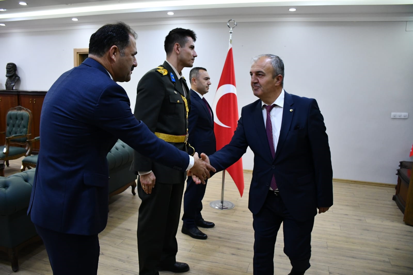 29 Ekim 2024 Salı günü Cumhuriyet bayramı törenleri kapsamında ilk olarak Demirci Kaymakamlığında Kaymakamımız Yavuz Arslan, Garnizon Komutanı Mly. Binbaşı Hüseyin Cihan Korkmaz ve Belediye Başkanımız Erkan Kara ilçe protokolünün tebriklerini kabul etti.
