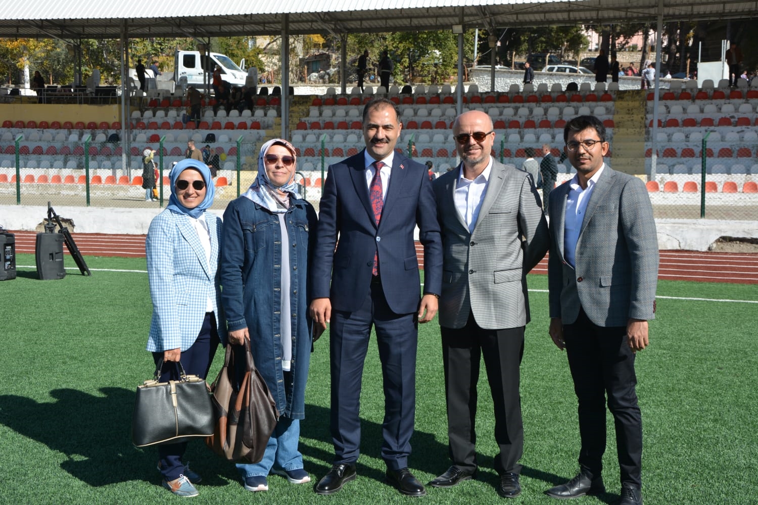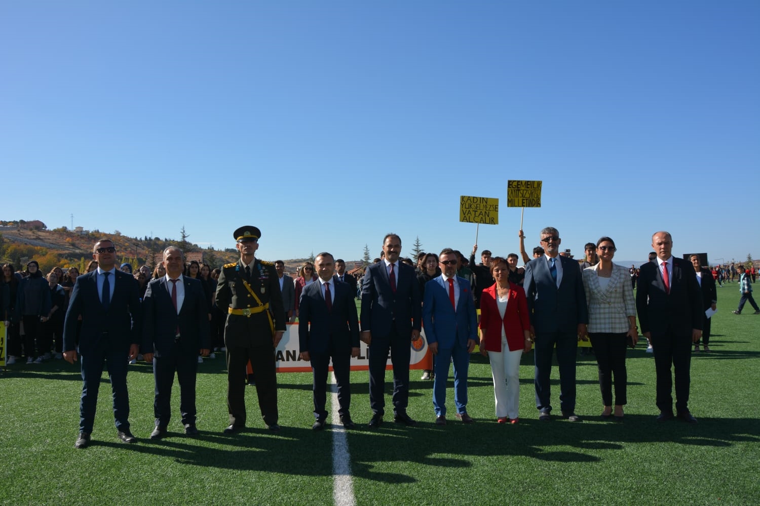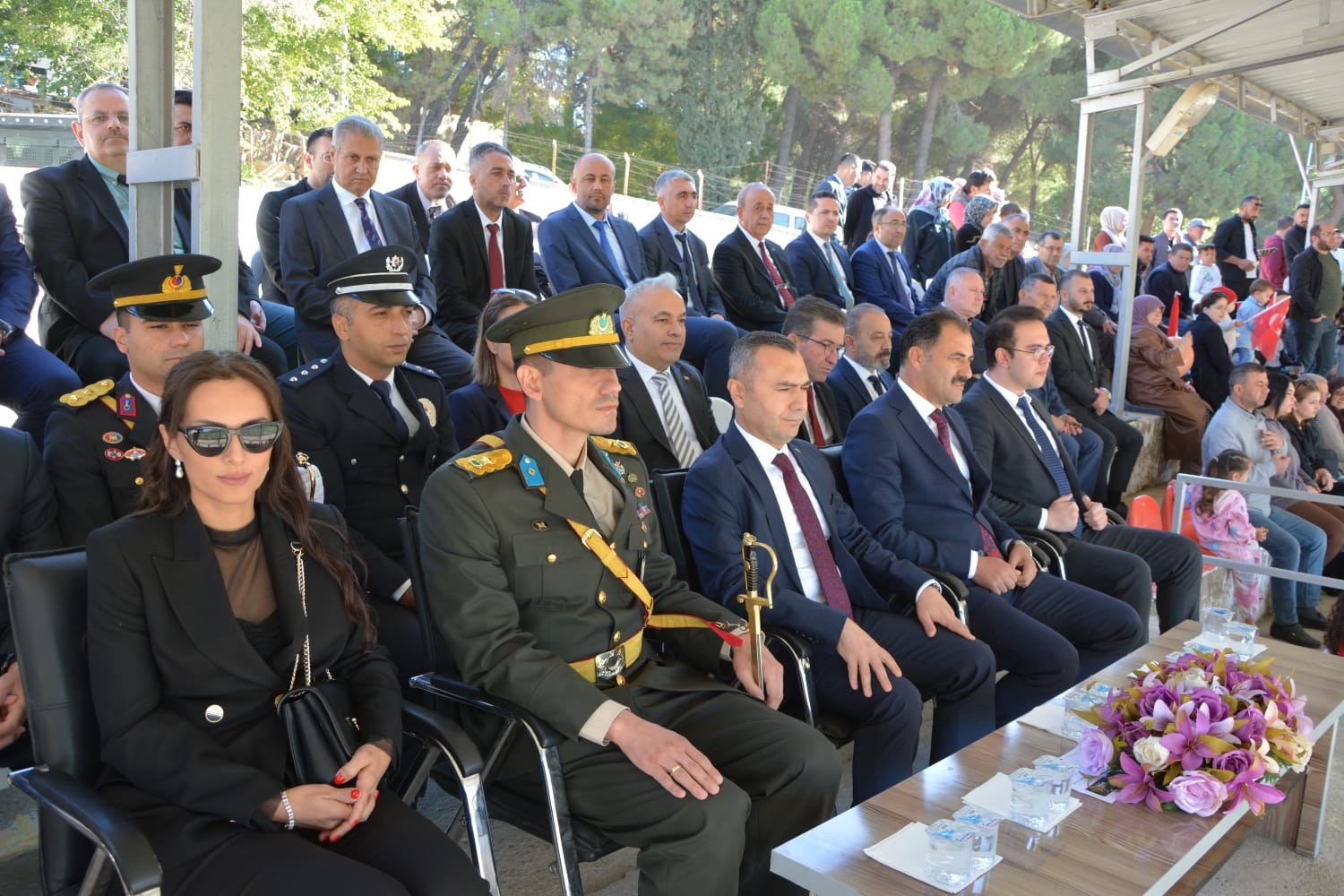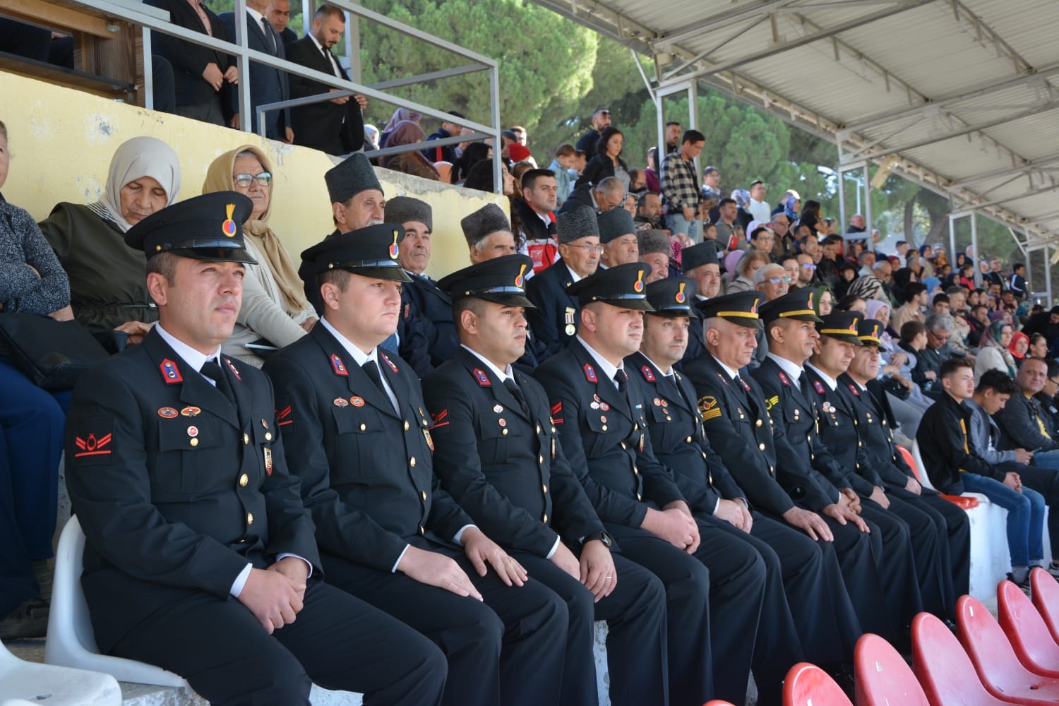 Kaymakamlık makamında düzenlenen tebrikat törenin ardından Kaymakamımız Yavuz Arslan, Garnizon Komutanı Mly. Binbaşı Hüseyin Cihan Korkmaz ve Belediye Başkanımız Erkan Kara törenlerin yapılacağı Kaymakam İbrahim Ethem Akıncı stadına geçiş yaptılar.