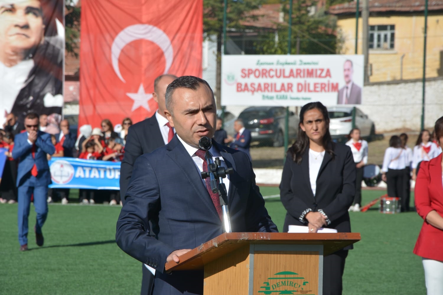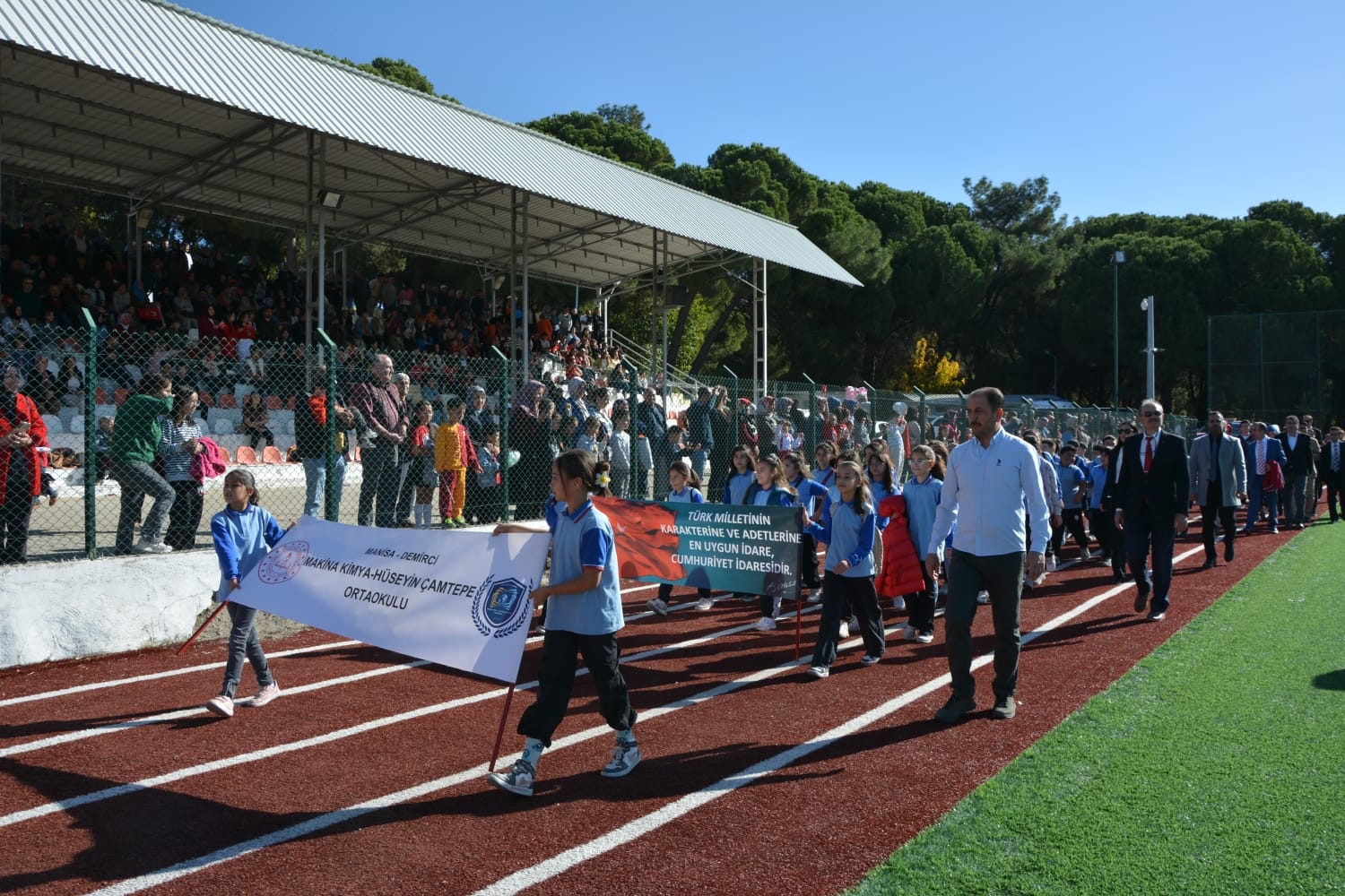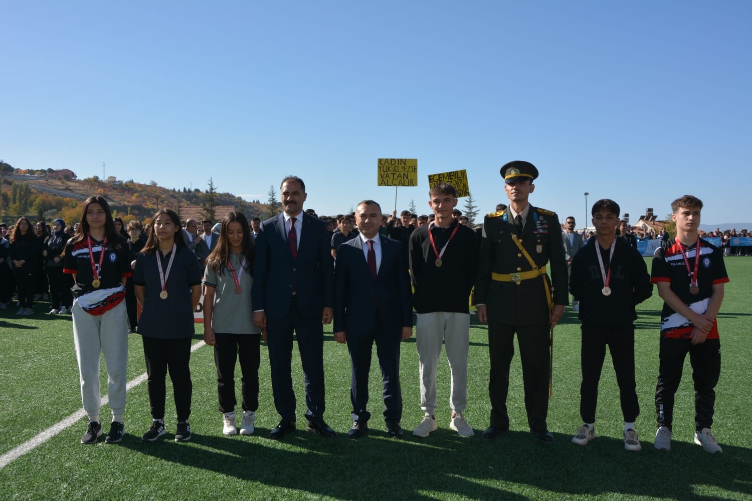 Kaymakam İbrahim Ethem Akıncı stadında düzenlenen törende Kaymakamımız Yavuz Arslan, Garnizon Komutanı Mly. Binbaşı Hüseyin Cihan Korkmaz ve Belediye Başkanımız Erkan Kara öğrencilerin ve halkın bayramını kutladılar.