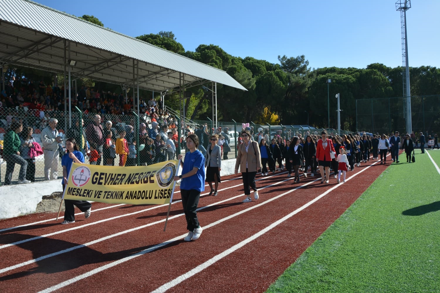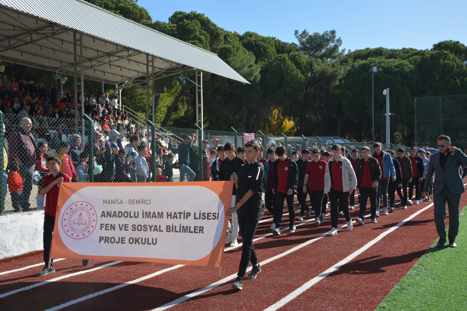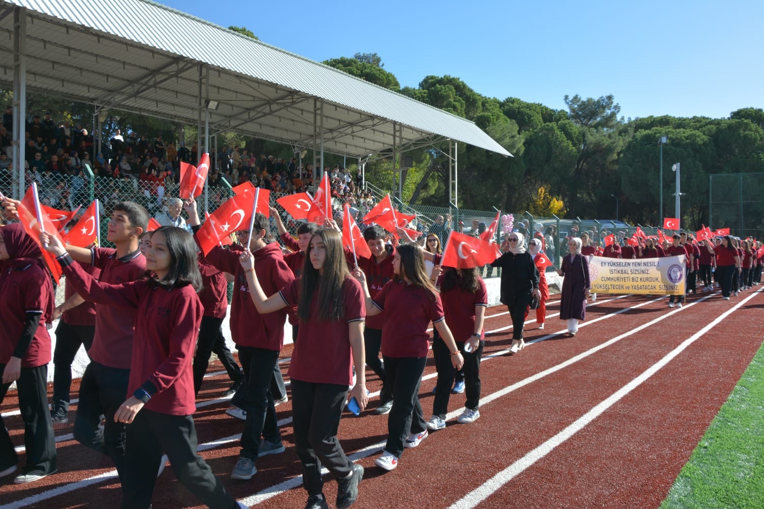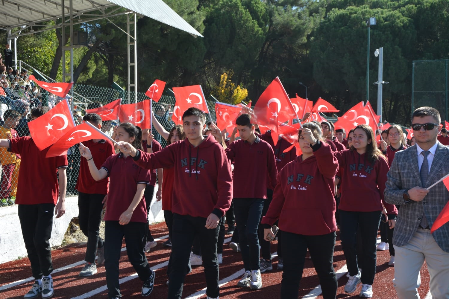 Milli Eğitim Müdürlüğü koordinasyonunda Anadolu Lisesi tarafından düzenlenen Cumhuriyet Bayramı törenlerinde öğrenciler tarafından öğretmen marşı, bando gösterisi, keman ve halk oyunları sergilendi.