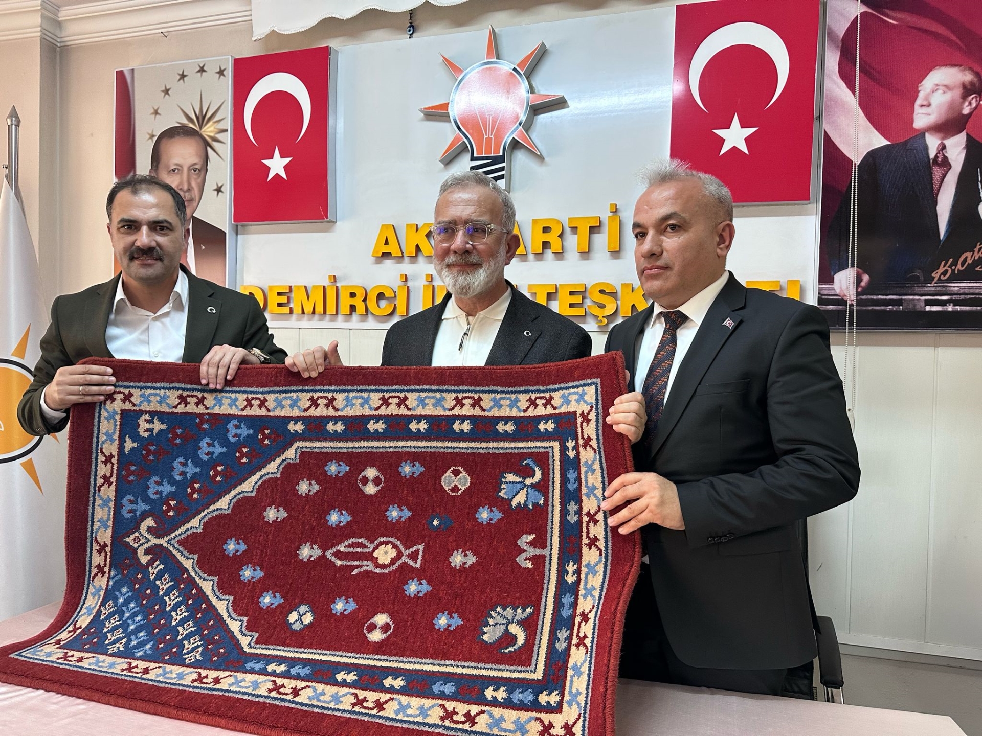 AK Parti Demirci İlçe Teşkilatını da ziyaret eden AK Parti Grup Başkanvekili Bahadır Yenişehirlioğlu, Belediye Başkanımız Erkan Kara, AK Parti İlçe Başkanı Nurullah Akgün ve partililer ile İlçeye yapılan ve yapımı devam eden yatırımlar ile ilgili istişarelerde bulundular.