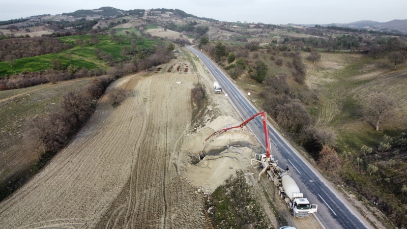 Yolu yapan ME-YU & Zi İnşaat firması yol yapım çalışmaları kapsamında Yeşildere köprüsü ile Tekeler rampası arasında menfez yapımına başladı.