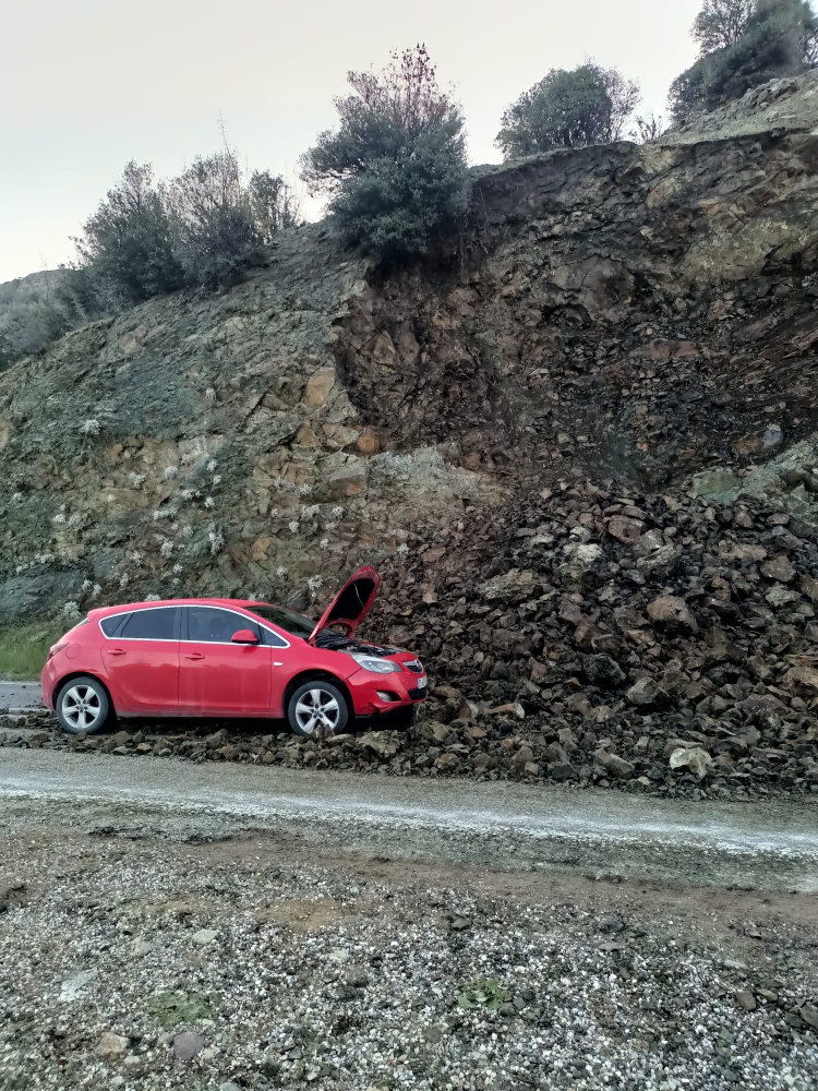 Yolan inen kaya ve topraklar sebebiyle karayolu ulaşıma kapanırken, toprak kayması sonucu yoldan geçen bir araçta da maddi asar meydana geldi.