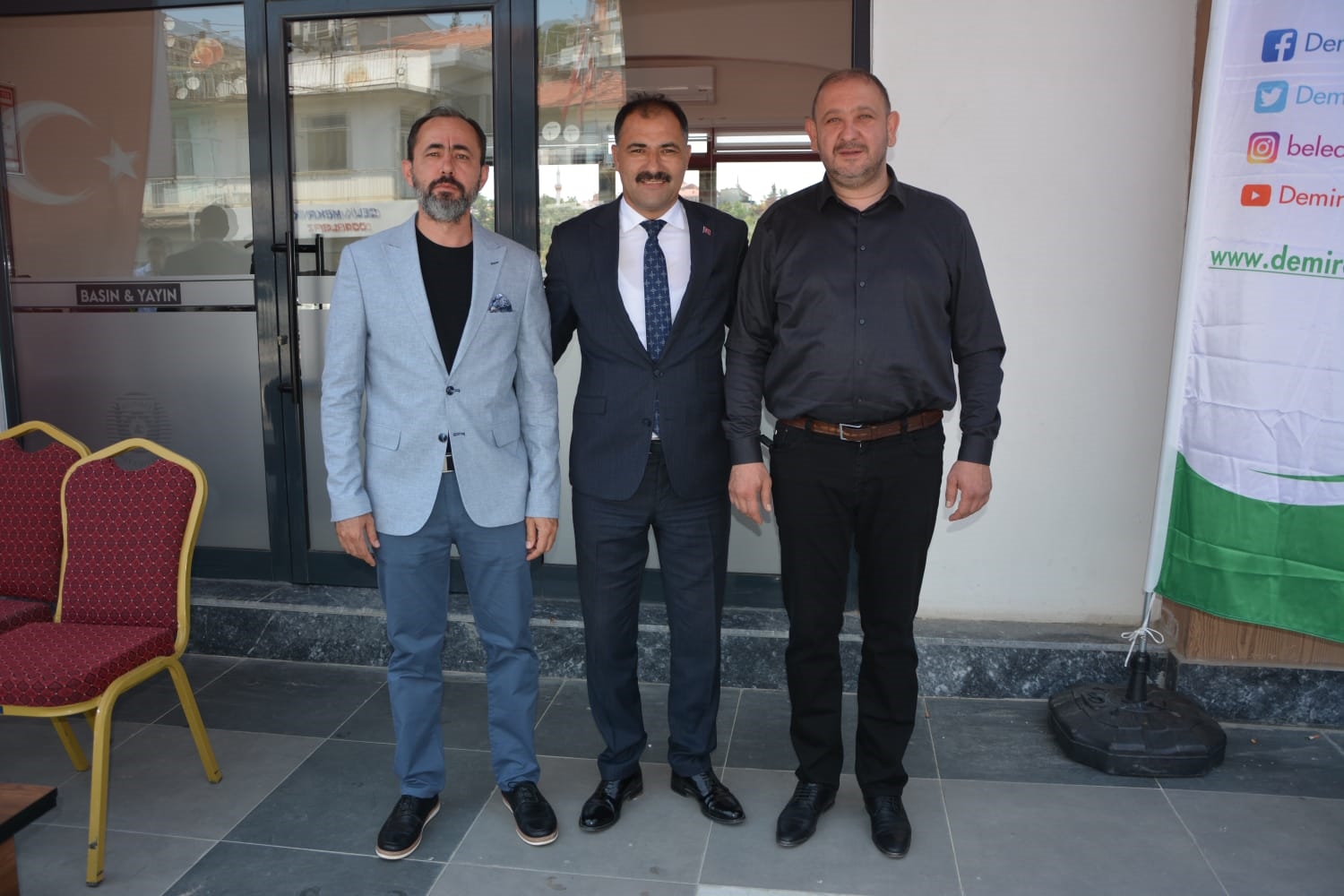 7 Haziran 2025 / Cumartesi günü Demirci Belediyesi yeni hizmet binasında düzenlenen bayramlaşma programına Belediye Başkanımız Erkan Kara, AK Parti İlçe Başkanı Nurullah Akgün, MHP İlçe Başkanı Ümit Kanyılmaz, İlçe Emniyet Müdürü Barış Kayar, Belediye Başkan Yardımcımız İsmail Hakkı Gül, belediye meclis üyeleri, muhtarlar ve vatandaşlar katıldı.