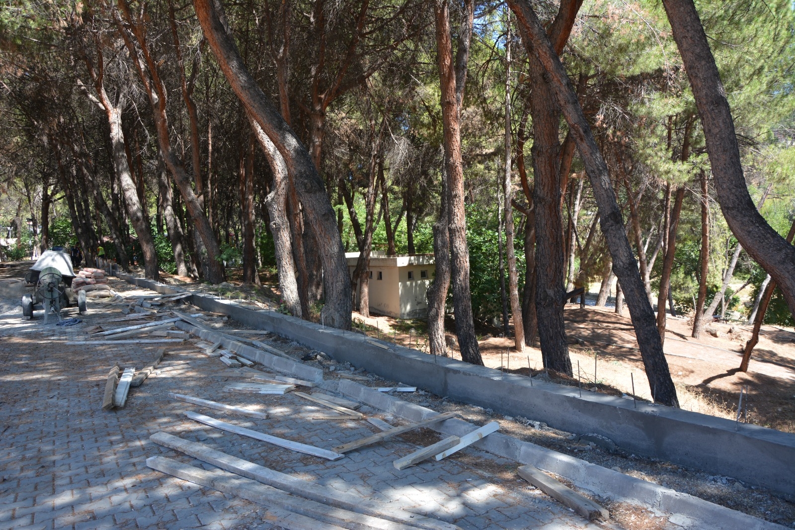 Park çevresine 900 metre uzunluğunda perde beton ve taş örme istinat duvarlarının yapımına başlandı.