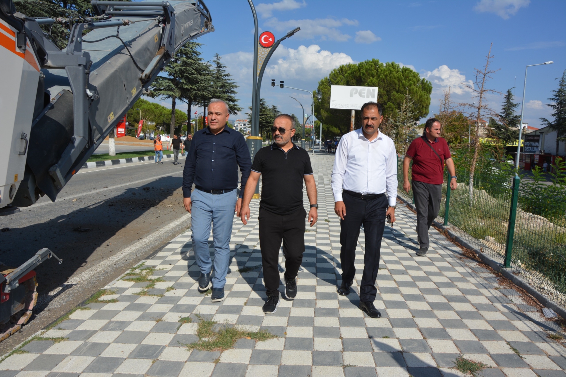 Belediye Başkanımız Erkan Kara'da, AK Parti İlçe Başkanı Nurullah Akgün ve MHP İlçe Başkanı Ümit Kanyılmaz ile birlikte sıcak asfalt çalışmalarını yerinde inceleyerek, yüklenici firmadan bilgi aldılar.