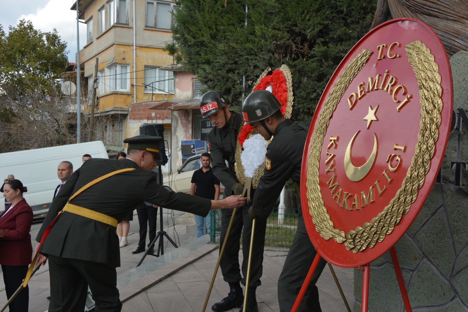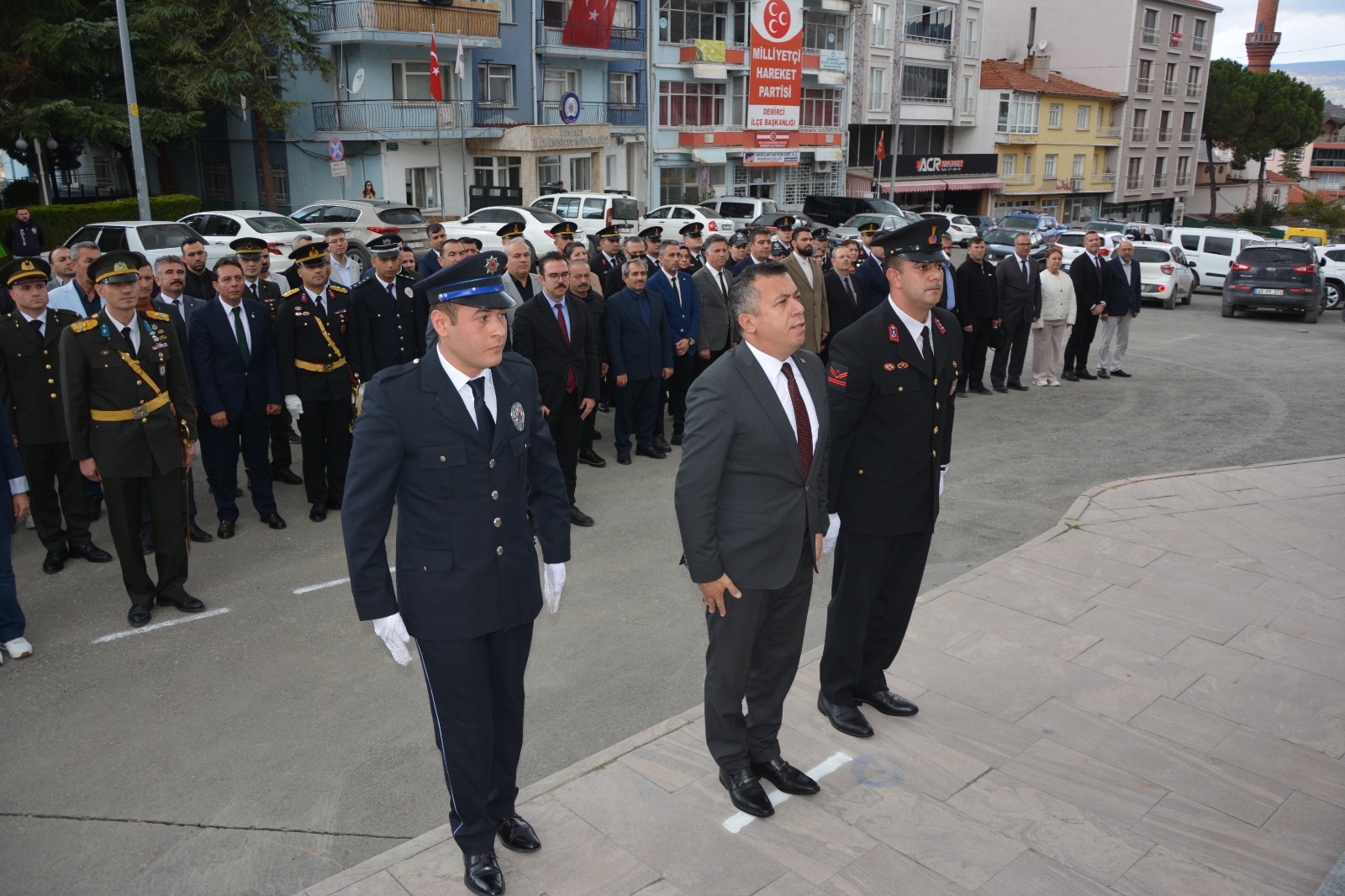 28 Ekim 2025 Salı günü 15 Temmuz Demokrasi ve Şehitler Meydanı Atatürk anıtı önünde düzenlenen törene Demirci Kaymakamı Fatih Bayram, Garnizon Komutanı Mly. Binbaşı Hüseyin Cihan Korkmaz, Belediye Başkanımız Erkan Kara, Cumhuriyet Başsavcısı Emre Aytaç, Eğitim Fakültesi Dekanı Prof. Dr. Fatma Şaşmaz Ören, İlçe Jandarma Komutanı Üsteğmen Uğurcan Şahin, İlçe Emniyet Müdürü Barış Kayar, kurum müdürleri, siyasi parti ilçe başkanları, oda başkanları ve vatandaşlar katıldı.