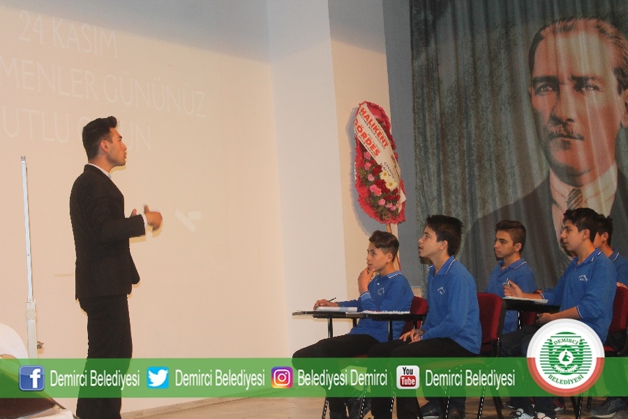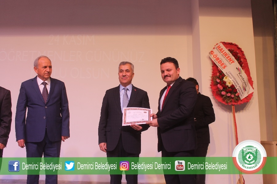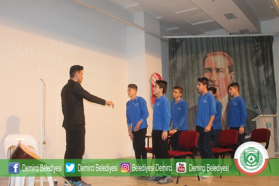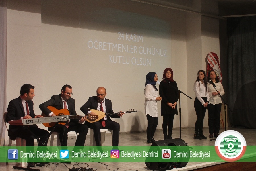 Gevher Nesibe Mesleki ve Teknik Anadolu Lisesi tarafından Ticaret ve Kültür Merkezinde düzenlenen 24 Kasım Öğretmenler günü programına Demirci Kaymakamı Mutlu Akyol, Belediye Başkanı Selami Selçuk, Eğitim Fakültesi Dekanı Prof. Dr. Ahmet Ataç, daire amirleri, öğretmenler ve öğrenciler katıldı.