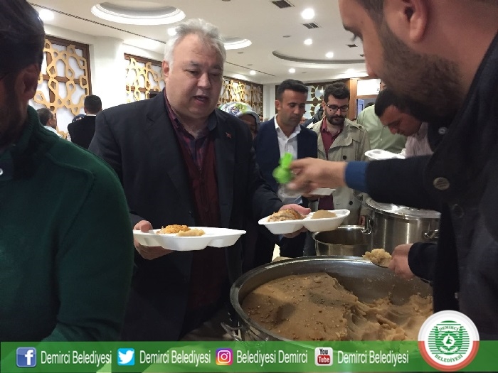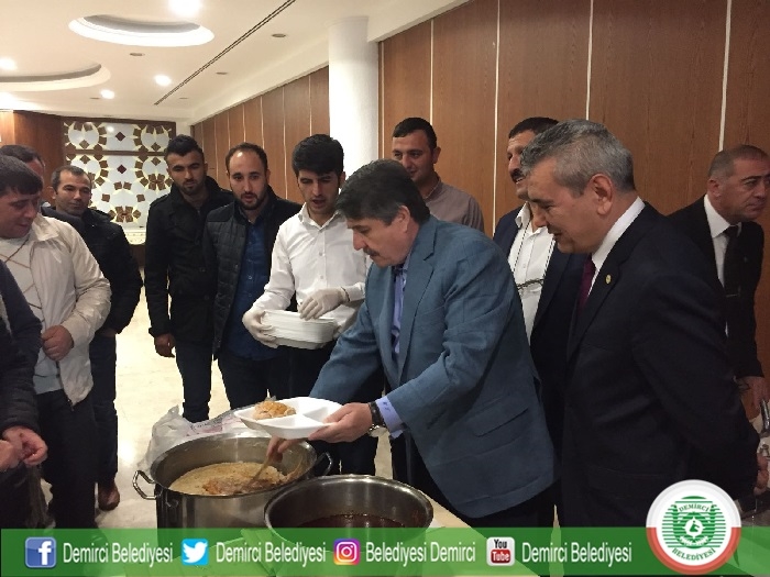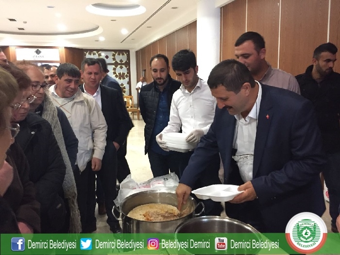 26 Kasım Pazar günü Gimat İlle Bankası Sosyal Tesislerinde düzenlenen program için Demirci'den Belediye meclis üyeleri, muhtarlar ve çok sayıda vatandaşımız Ankara'ya götürüldü. Keşkek gününe Belediye Başkanı Selami Selçuk eşi Güzide Selçuk, Cengiz Öner Adalet Bakanlığı Müsteşar Yardımcısı, Halil Özdemir 10'uncu Yargıtay Daire Başkanı, İsmail Aydın Yargıtay Savcısı, Hasan Çınar Eskişehir Sulh Hakimi, Hakkı Susmaz Cumhurbaşkanlığı Kanunlar ve Kararlar Başkanı, İsmail Özdağlar Devlet eski Bakanı, Hüseyin Tanrıverdi Manisa eski Milletvekili, Abdullah Arslan Askeri Yargıtay eski Başkanı, Musa Yılmaz TUİK 2. Başkanı, Hizmet İş Genel Sekreteri Ali Rıza Yılmaz, Emin Sert Karayolları 4. Bölge Müdür Yardımcısı, Mustafa Karpuzcu Devlet Hava Meydanları Daire Başkanı, Bülent Siper Personel Albay Çankaya Askerlik Şube Başkanı, Kemal Urgancı Çankaya Oyak Bankası, Metin Orhan Yıldırım Beyazıd Üniversitesi Diş Hekimliği Dekanı, Ak Parti Demirci İlçe Başkanı Mehmet Acar, Prof. Dr. Hayri Kırbaşoğlu Ankara Üniversitesi İlahiyat Fakültesi Hadis Ana Bilim Dalı Başkanı, Prof. Dr. Mustafa Alkan Gazi Üniversitesi Tarih Bölümü, Osman Siper Tütün Alkol Piyasası Düzenleme Kurulu Yönetim Kurlu üyesi ve çok sayıda Demircili hemşerimiz katıldı.