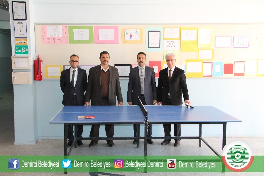 Belediye Başkanı Selami Selçuk, İlçe Milli Eğitim Müdürü Yüksel Kocabaş ve Gençlik Hizmetleri Spor İlçe Müdürü Bilal Yılmaz, okullarımızı ziyaret ederek masa tenislerini teslim ettiler.