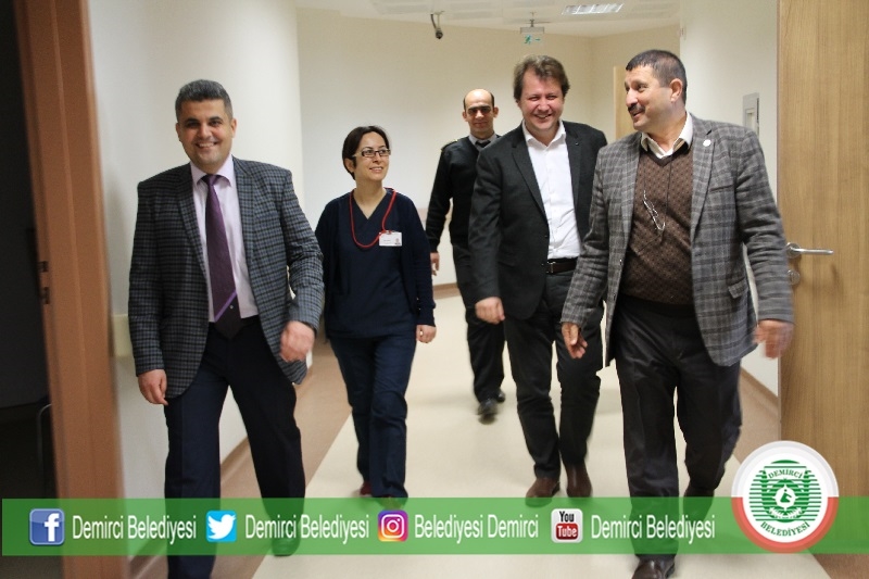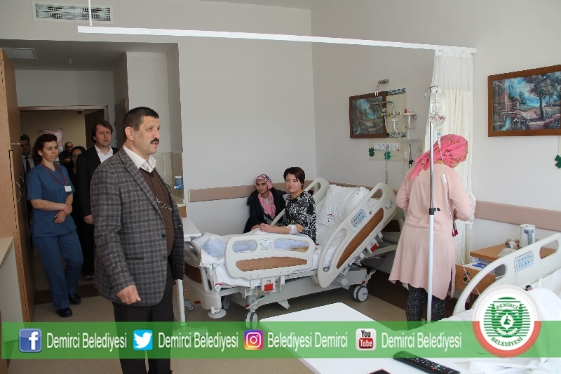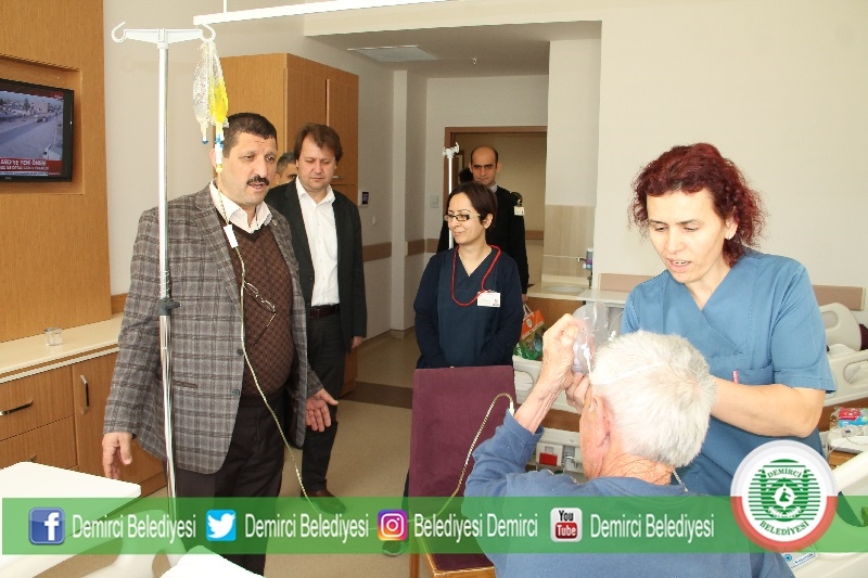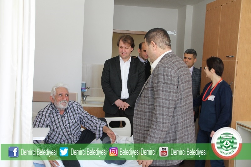Başkan Selami Selçuk bu hafta ziyaretleri kapsamında Demirci Devlet Hastanesine giderek, hastanede tedavi gören hastaları ziyaret ederek hastalara geçmiş dileklerinde bulunarak, taleplerini dinledi.