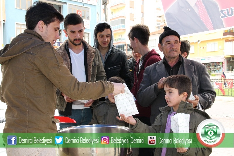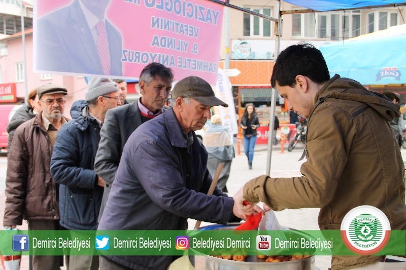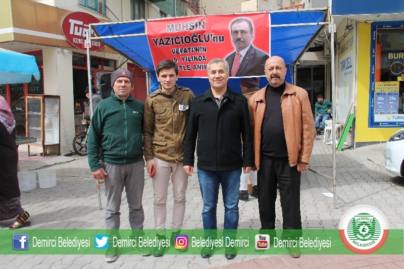 Demirci'de bir grup Alperenler ve Muhsin Yazıcıoğlu'nu sevenler tarafından çereşe meydanında vefatının 9'uncu yıldönümü dolayısı ile lokma hayrı yapıldı.