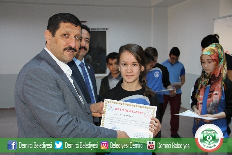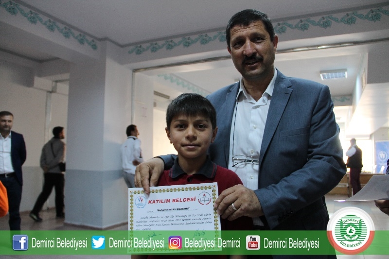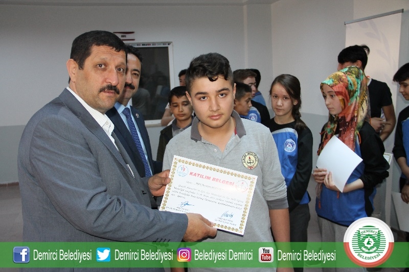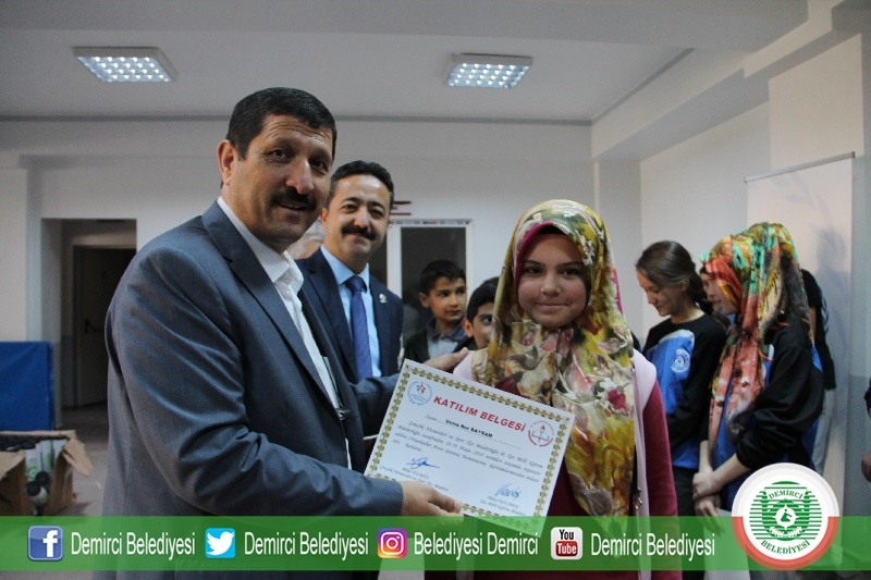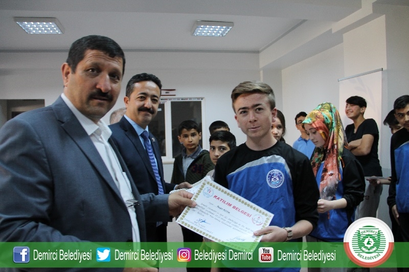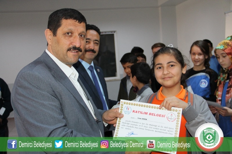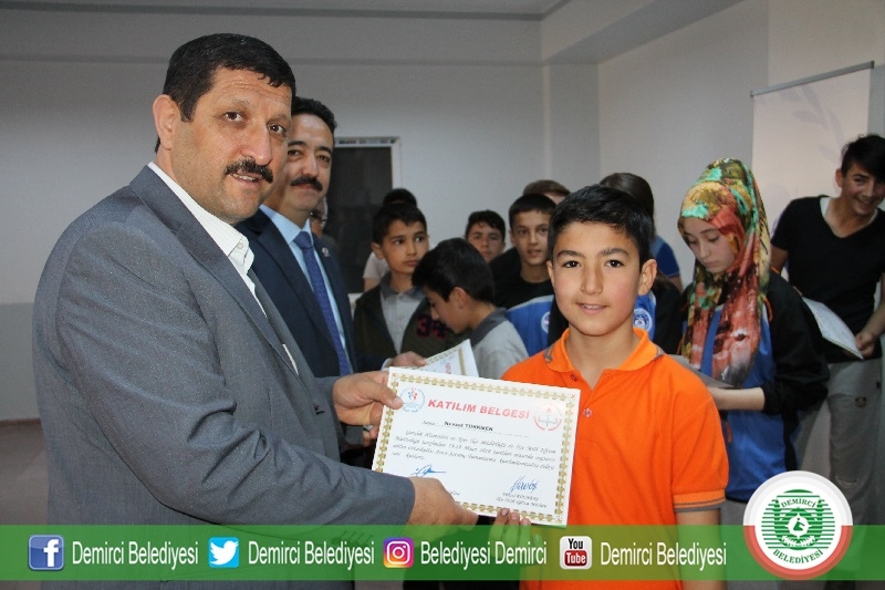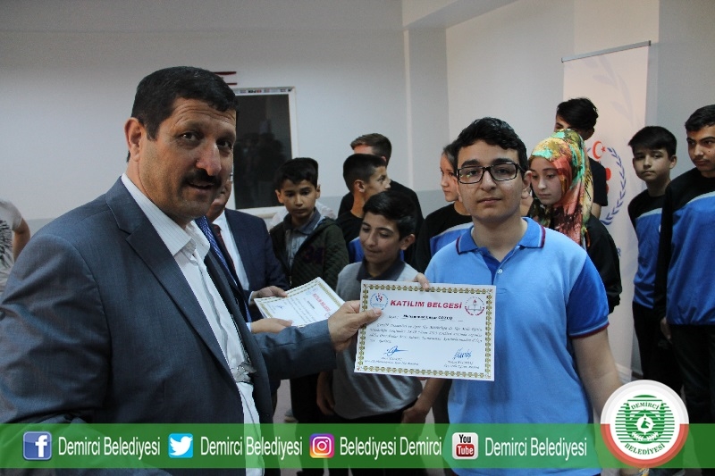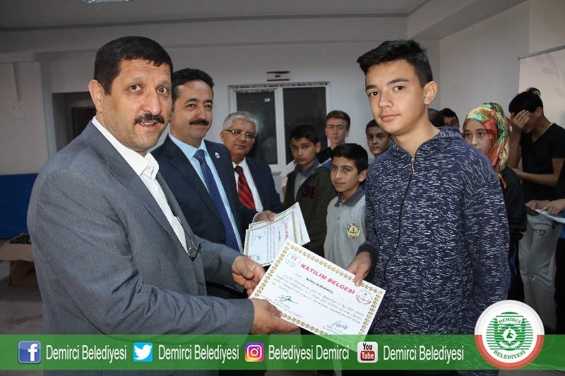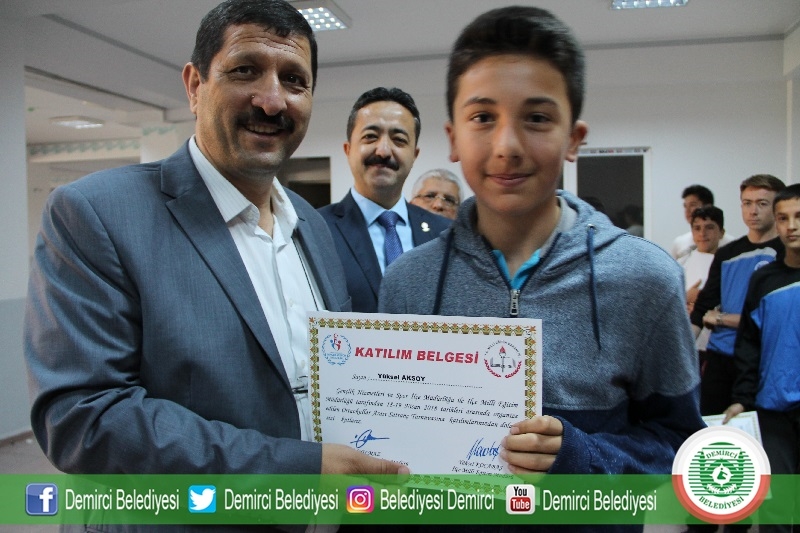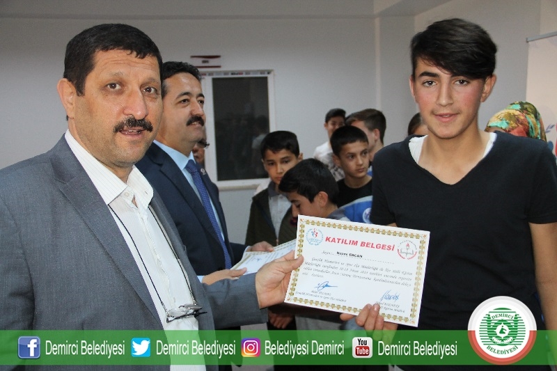 Başkan Selami Selçuk, satranç turnuvasına katılan öğrencilere Demirci Belediyesi logolu satranç takımı hediye etti.