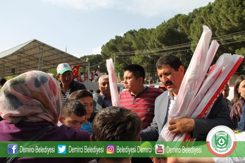 Demirci Belediyesi sosyal ve kültürel etkinlikleri kapsamında Kaymakam İbrahim Ethem Akıncı stadında düzenlenen hıdrellez ve uçurtma şenliğine Demirci Kaymakamı Mutlu Akyol, Belediye Başkanı Selami Selçuk, Ak Parti İlçe Başkanı Mehmet Acar, Belediye Meclis Üyeleri ve Ak Parti İlçe Yönetim Kurulu Üyeleri, öğrenciler ve vatandaşlar katıldı.