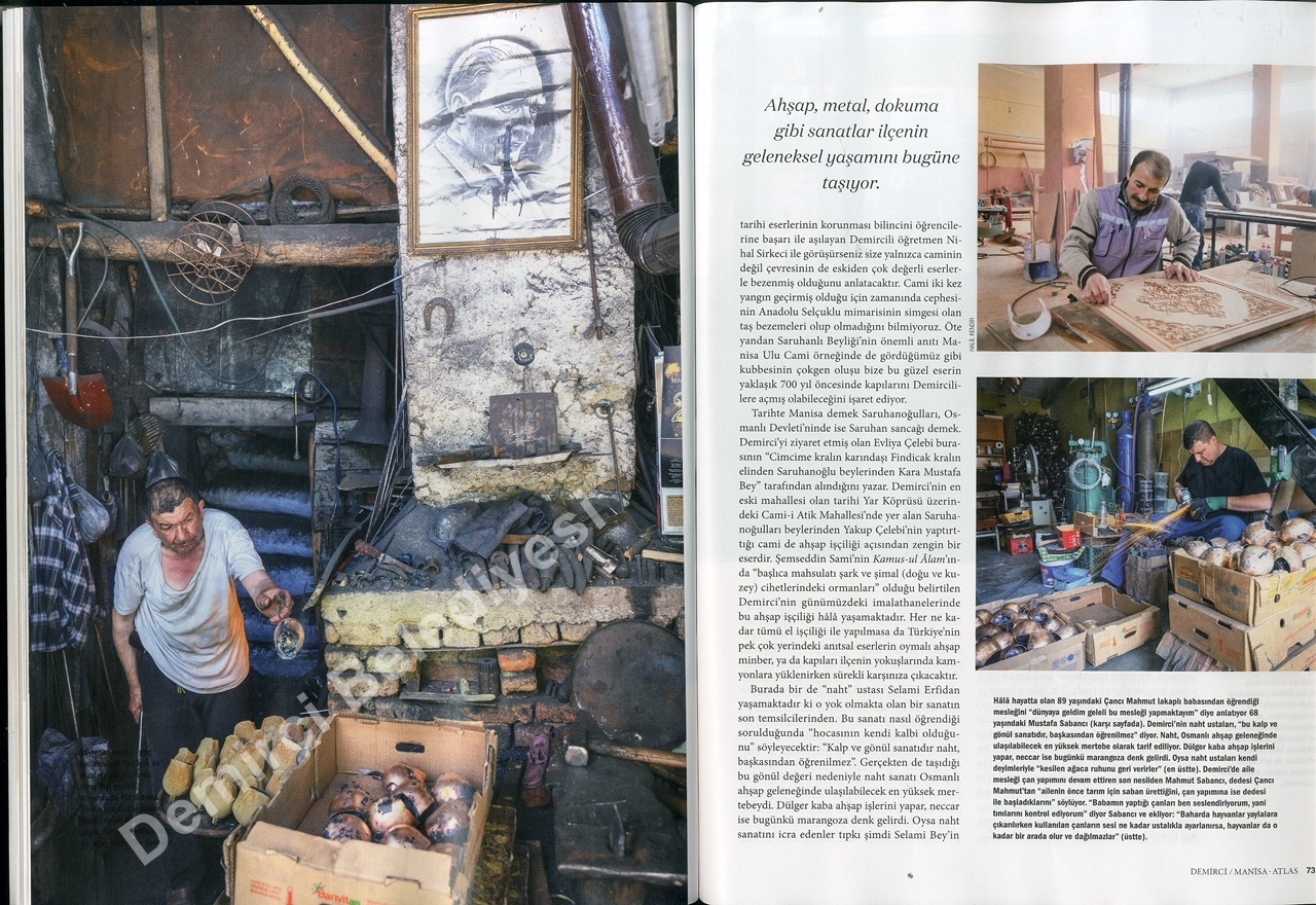 Mayıs ayı içerisinde Demirci'yi ziyaret eden Atlas Dergisi Fotoğrafçısı İlçe'de unutulmaya yüz tutmuş mesleklere yer verilirken, tarihi ve eski yapıları da fotoğraflandı.