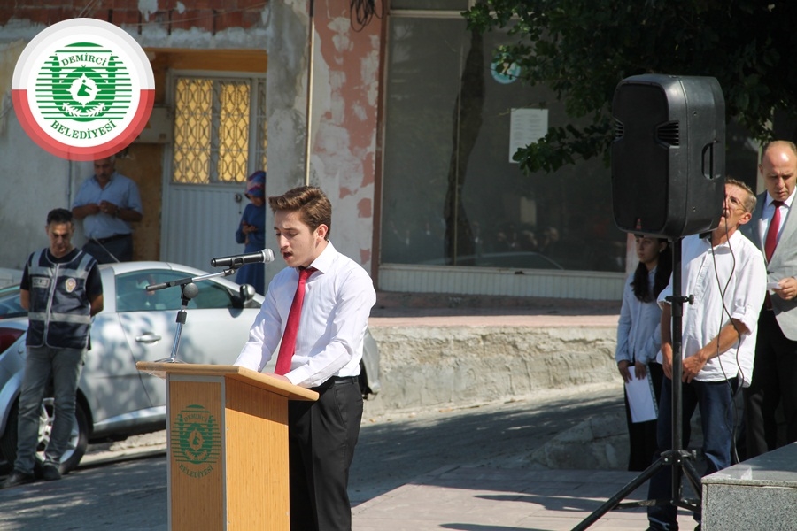 Demirci Askerlik Şube Başkanı İlker tarafından günün anlam ve önemini belirten bir konuşma yapıldı. Konuşmanın ardından öğrenciler tarafından şiirler okundu.