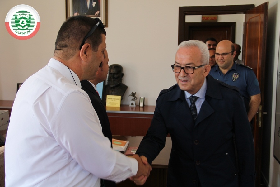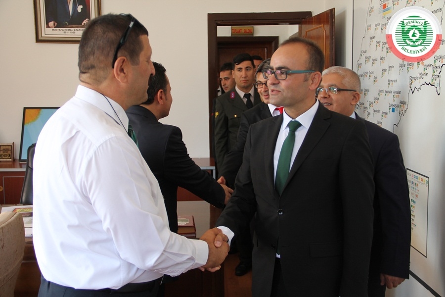 Belediye hizmet binası önündeki törenlerin ardından Demirci Kaymakamı Mutlu Akyol ve Belediye Başkanı Selami Selçuk tarafından kutlamalar kabul edildi.