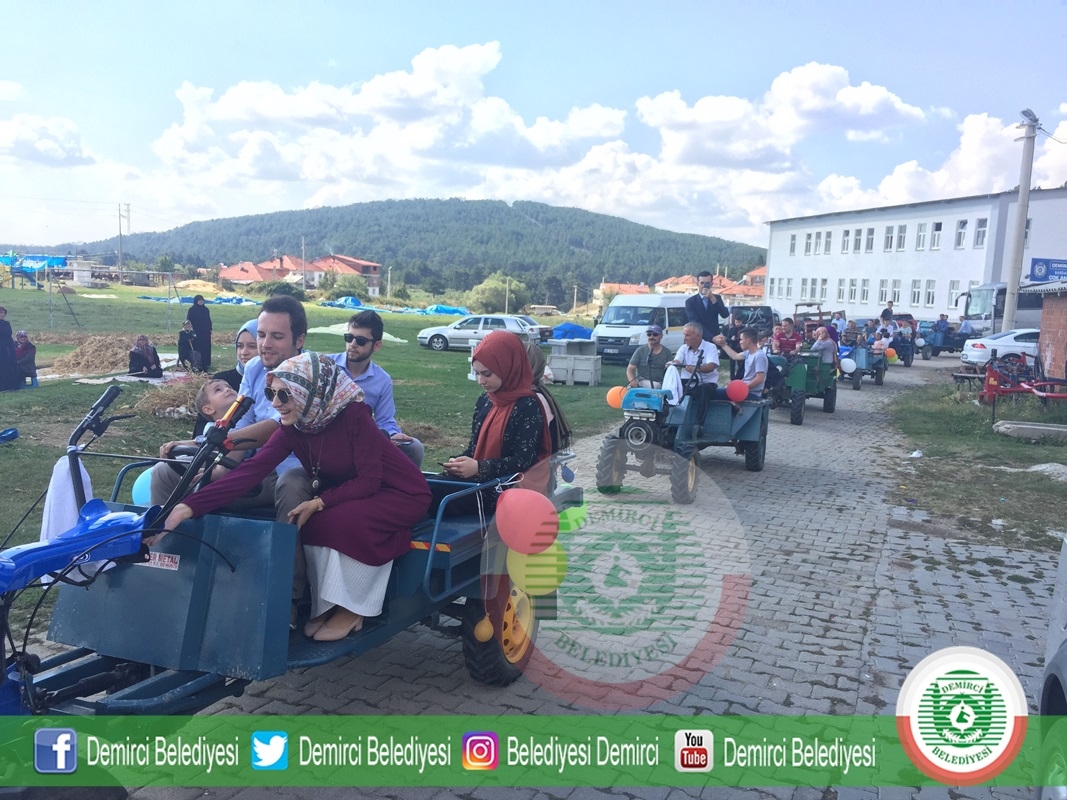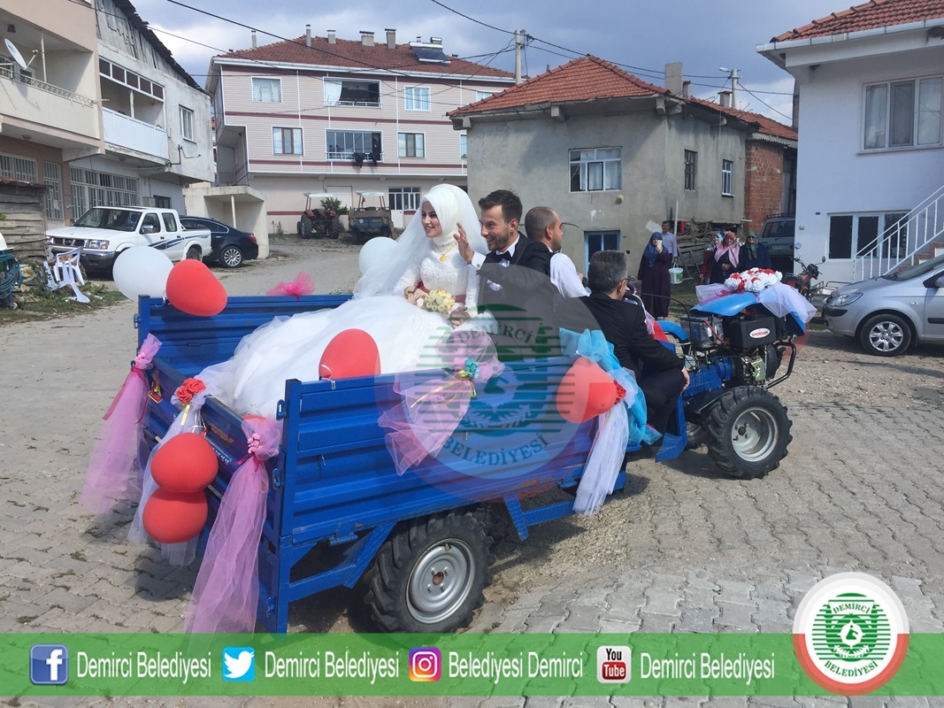 Demirci'ye bağlı Bardakçı mahallesinde evlenen Elif ve Abdurrahman Karagül çifti düğün konvoylarını kasalı pat pat motoru ile yaptılar. Mahallede düğüne davetli tüm vatandaşlarda konvoya kendilerine ait pat pat motorları ile destek verdiler.