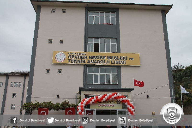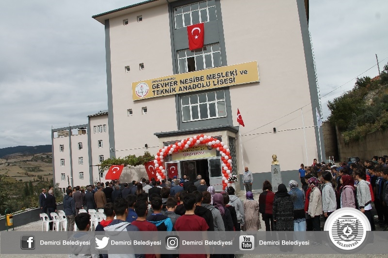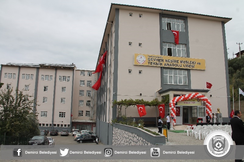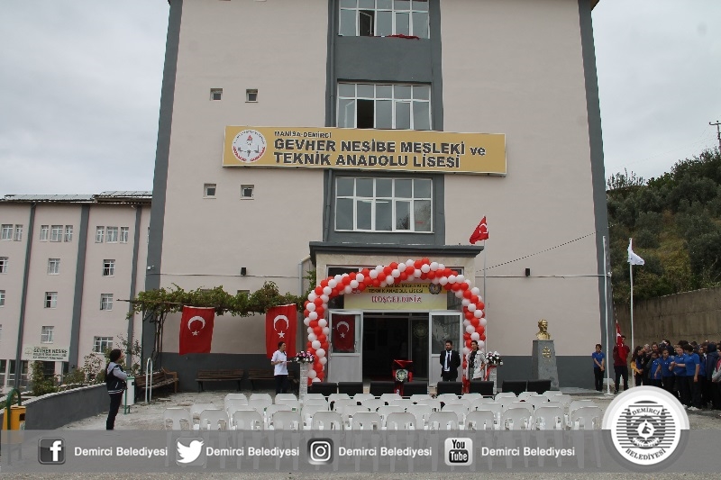 Konuşmaların ardından Demirci Kaymakamı Mutlu Akyol, Belediye Başkanı Selami Selçuk ve beraberindeki protokol üyeleri Gevher Nesibe Mesleki ve Teknik Anadolu Lisesi'nin yeni binasının açılış kurdelesini kestiler