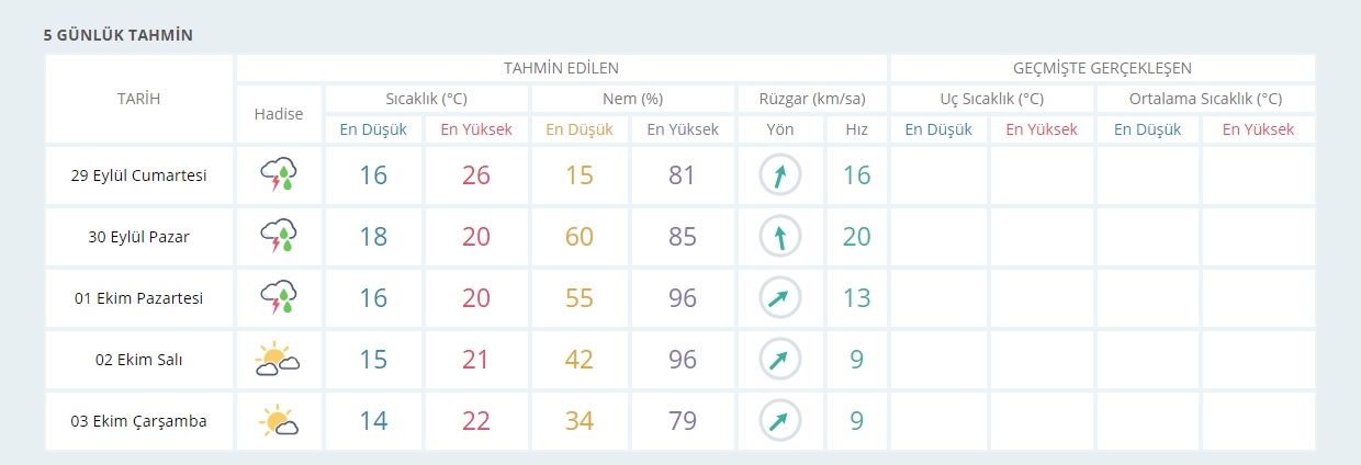 Meteorolojiden yapılan son değerlendirmelere göre; Orta Akdeniz üzerinde oluşan tropik fırtınanın, 30.09.2018 Pazar günü ülkemizin batı kesimlerini etkilemesi bekleniyor. Bu sistemle birlikte Ege’nin batısında (İzmir, Muğla, Aydın ve Manisa), Marmara’nın batısında (Çanakkale, Balıkesir, Tekirdağ, Kırklareli, Edirne’nin güneyi ile batı kesimleri başta olmak üzere İstanbul’da) yerel olarak çok kuvvetli ve şiddetli (50-100 kg/m2) , Çanakkale ve Muğla ile İzmir ve Balıkesir’in batı kesimlerinde yer yer aşırı (100 kg/m2 üzeri) sağanak ve gök gürültülü sağanak yağış beklendiğinden sel, su baskını, yıldırım, hortum , ulaşımda aksamalar gibi olumsuzluklara karşı dikkatli ve tedbirli olunmalıdır" denildi.