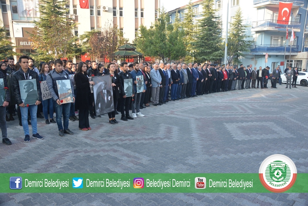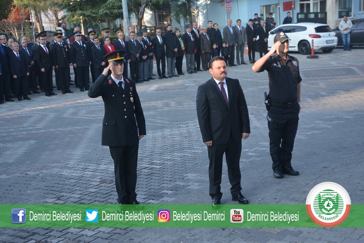 Demirci'de ilk tören belediye hizmet binası önünde bulunan Atatürk anıtında düzenlendi.