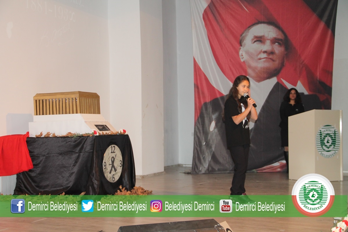 Ticaret ve Kültür Merkezinde düzenlenen programda 75.Yıl Alime Paşa Ortaokulu Müdürü İsmail Hakkı Yılmaz tarafından günün anlam ve önemini belirten konuşmasının ardından, Atatürk Neredesin orotoryosu, slayt gösterisi ve Atatürk'ün Sevdiği Türküler seslendirildi.