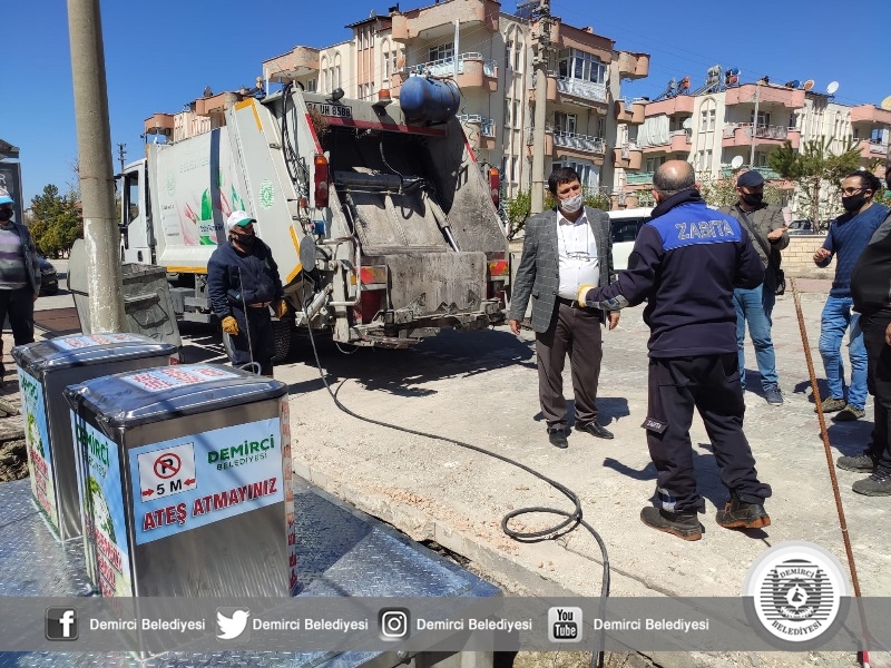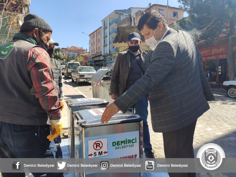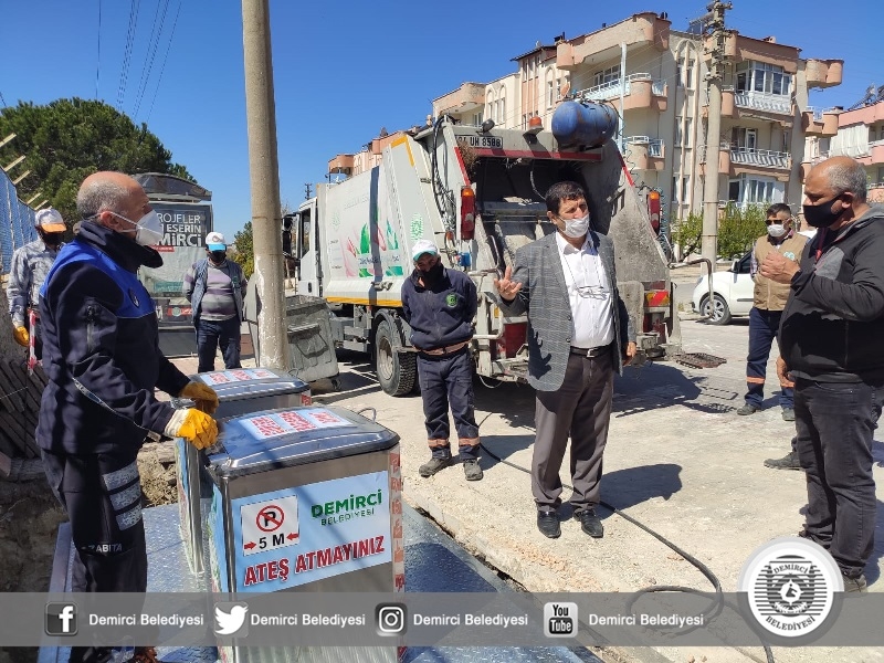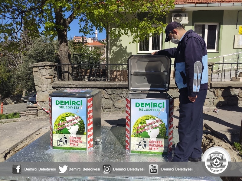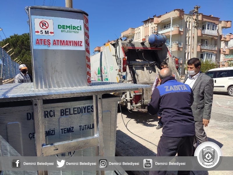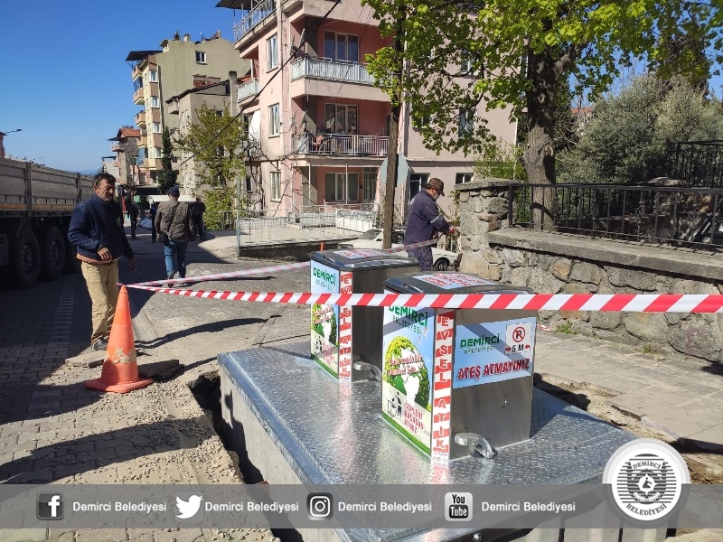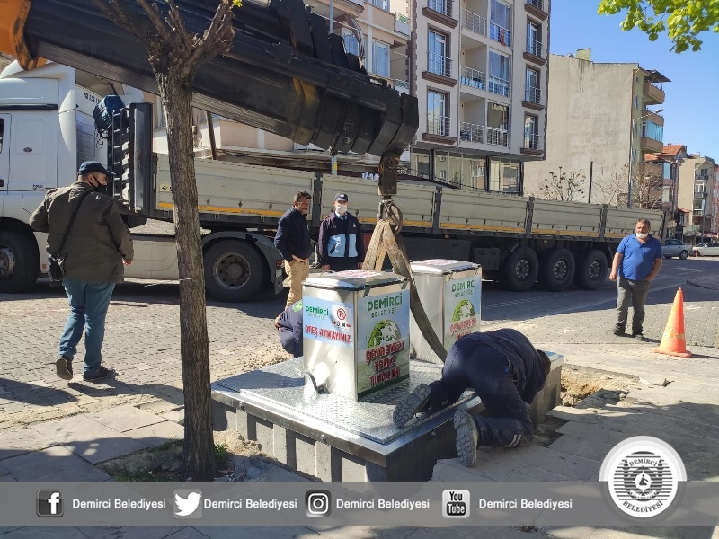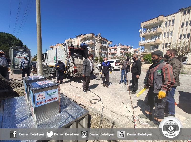 Demirci Belediyesi uygulamaya soktuğu modern yer altı çöp konteyneri sistemiyle, çöp ve atıkları yer altında tutarak; koku, bakteri, hastalık ve benzeri istenmeyen sonuçların önüne geçiyor.