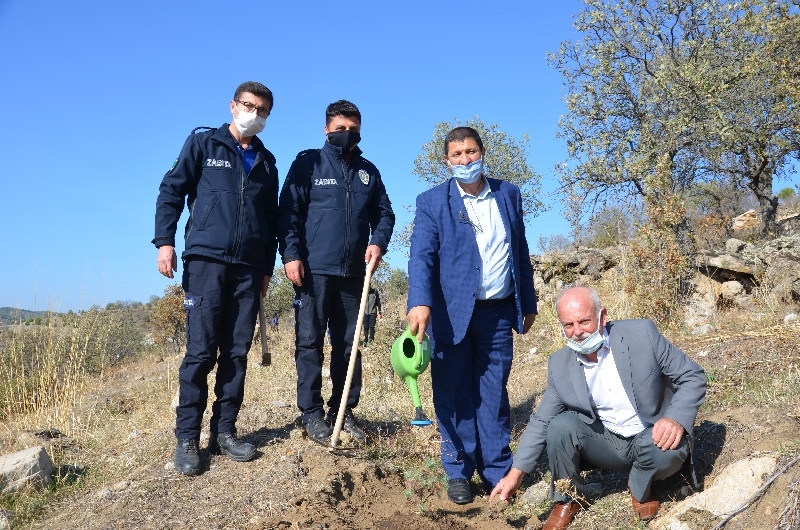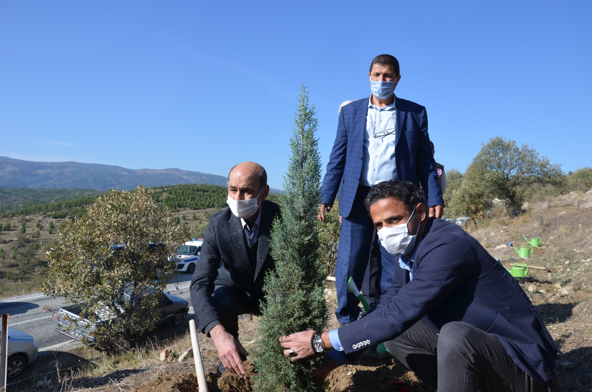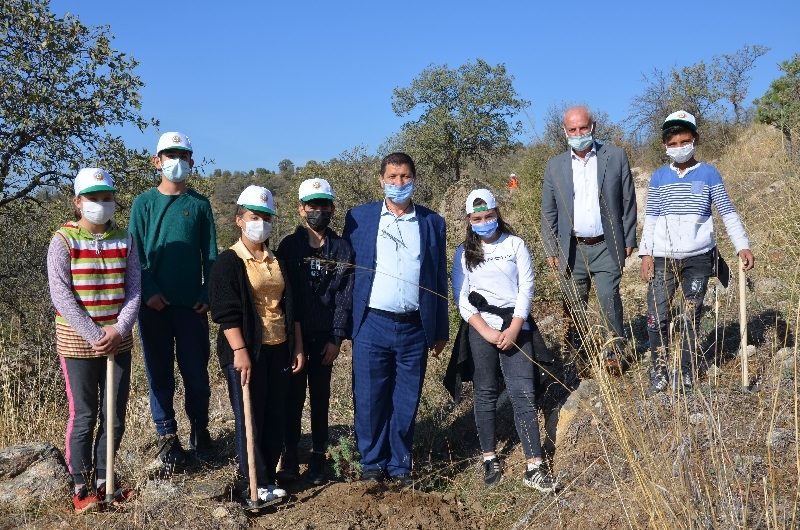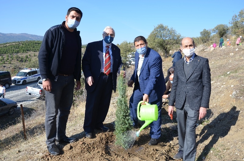 Kaymakam Kaya, Başkan Selami Selçuk ve katılımcıları 11 Kasım Saat: 11.11'de fidanları toprakla buluşturdular.
