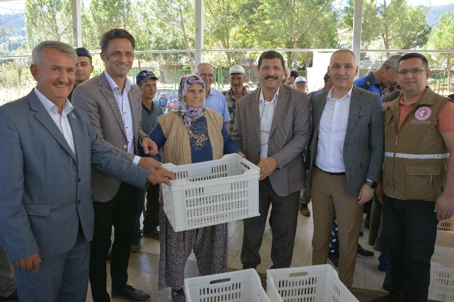 Tarım ve Orman Bakanlığı Bitkisel Üretim Genel Müdürlüğünce temin edilen hünnap boylama makinesi ve 1200 adet hünnap kasası Söğütçük mahallesindeki üreticilere teslim edildi.