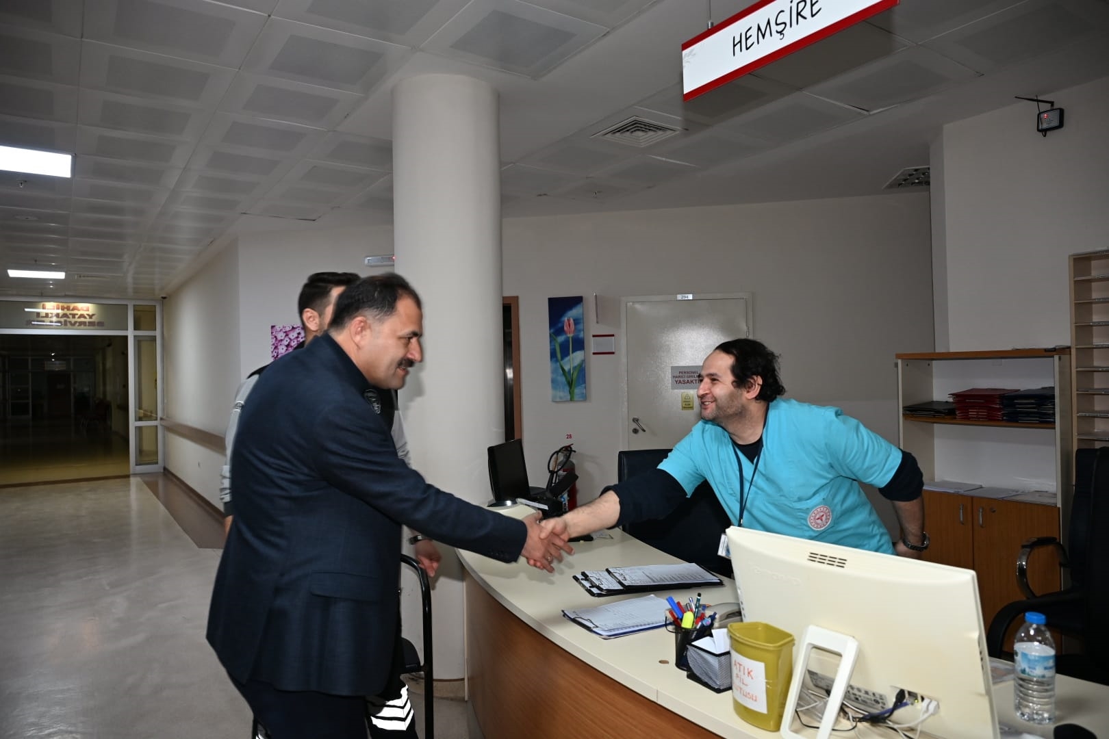 Demirci Devlet Hastanesini de ziyaret eden Başkanımız Erkan Kara sağlık personelinin ve tedavi gören vatandaşlara moral ziyareti yaparak bayramlarını tebrik etti.