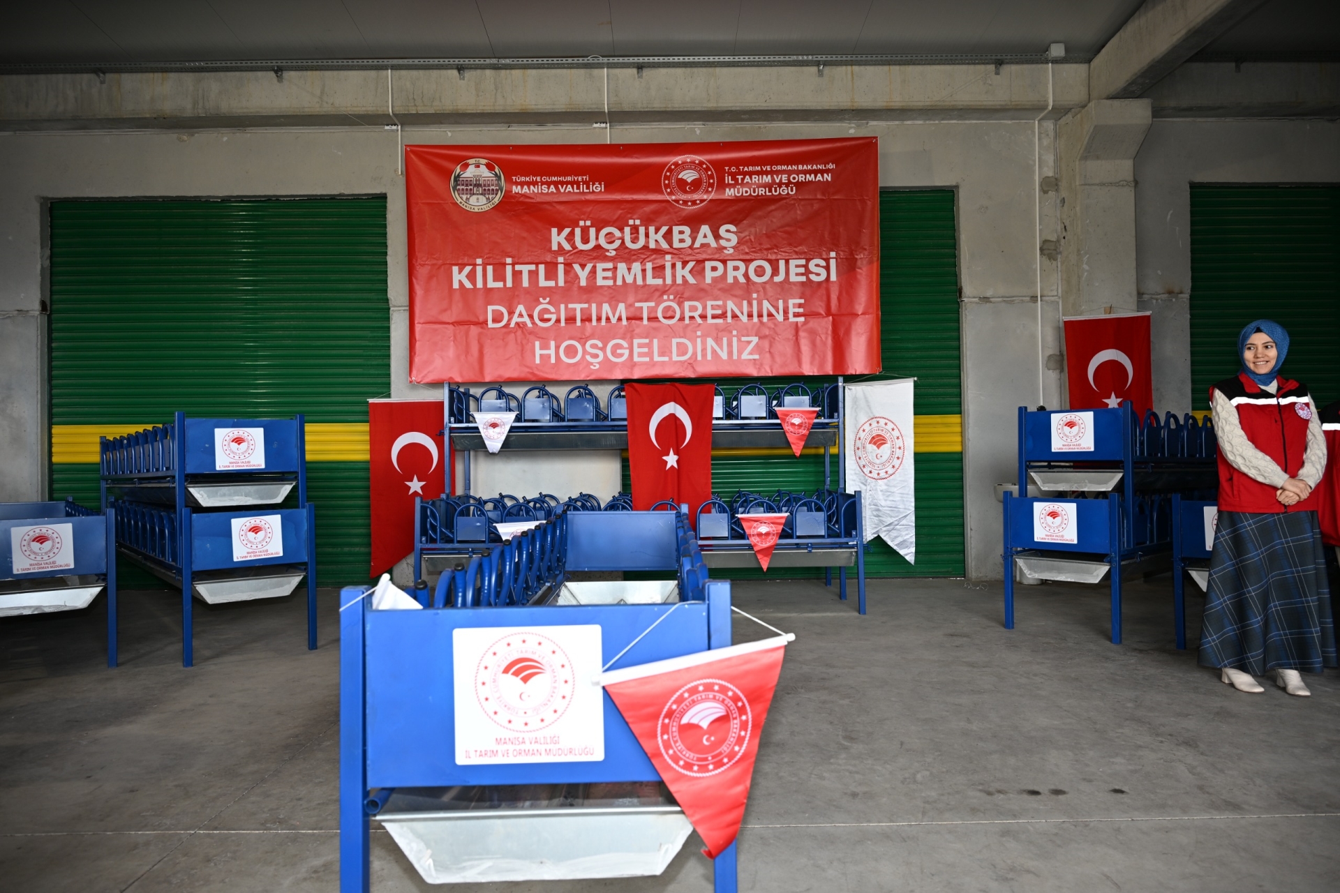 Demirci’de küçükbaş hayvancılığı modernize etmek ve üretimde verimliliği artırmak amacıyla Tarım ve Orman Bakanlığı tarafından başlatılan proje kapsamında, 14 üreticiye %80 hibeli kilitli yemlikleri törenle teslim edildi.